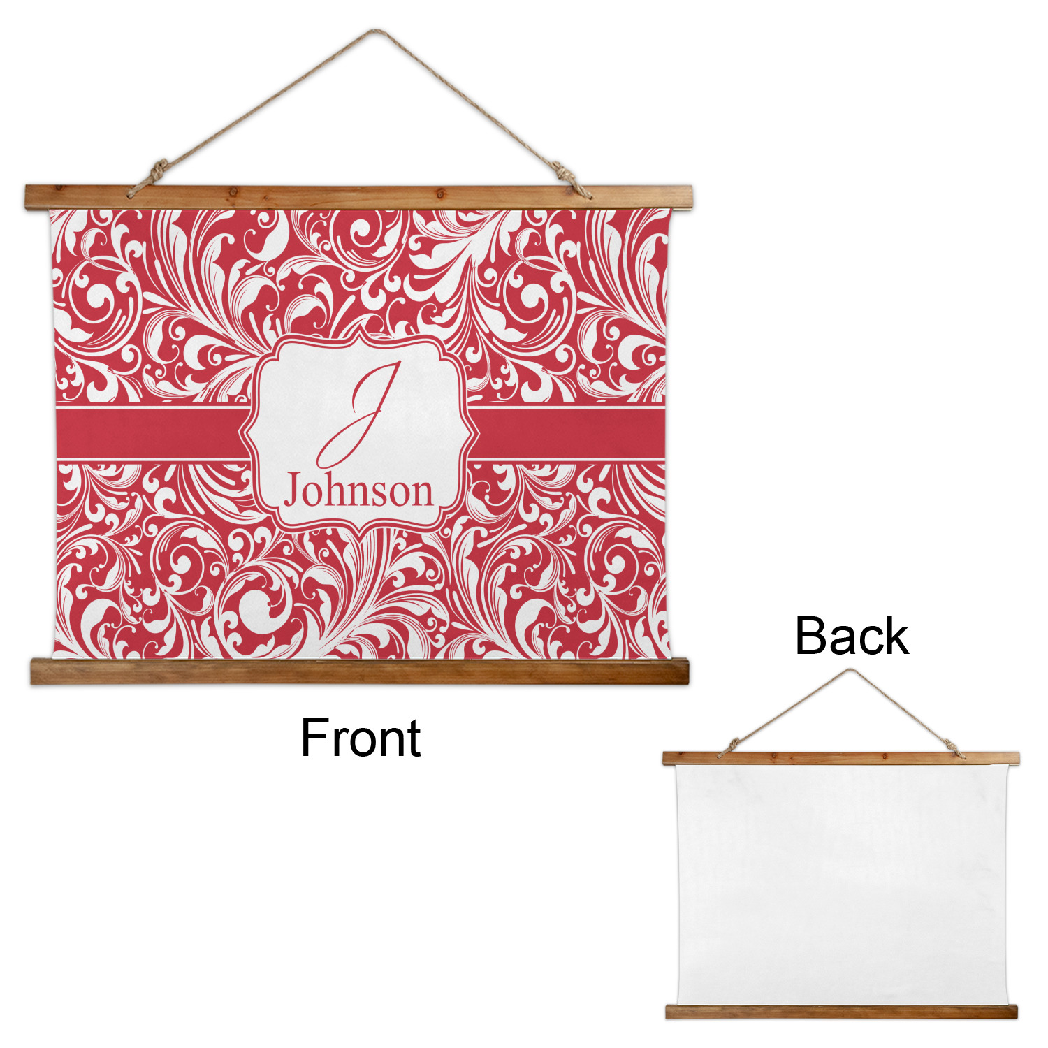 Made in two different orientations - portrait or landscape - both are 26" x 36". Your design is printed on a high quality polyester fabric with hemmed edges. The wood on the top and bottom of the tapestry is 1.25" tall and 0.25" thick and there are two pieces on top and bottom which sandwich the fabric.