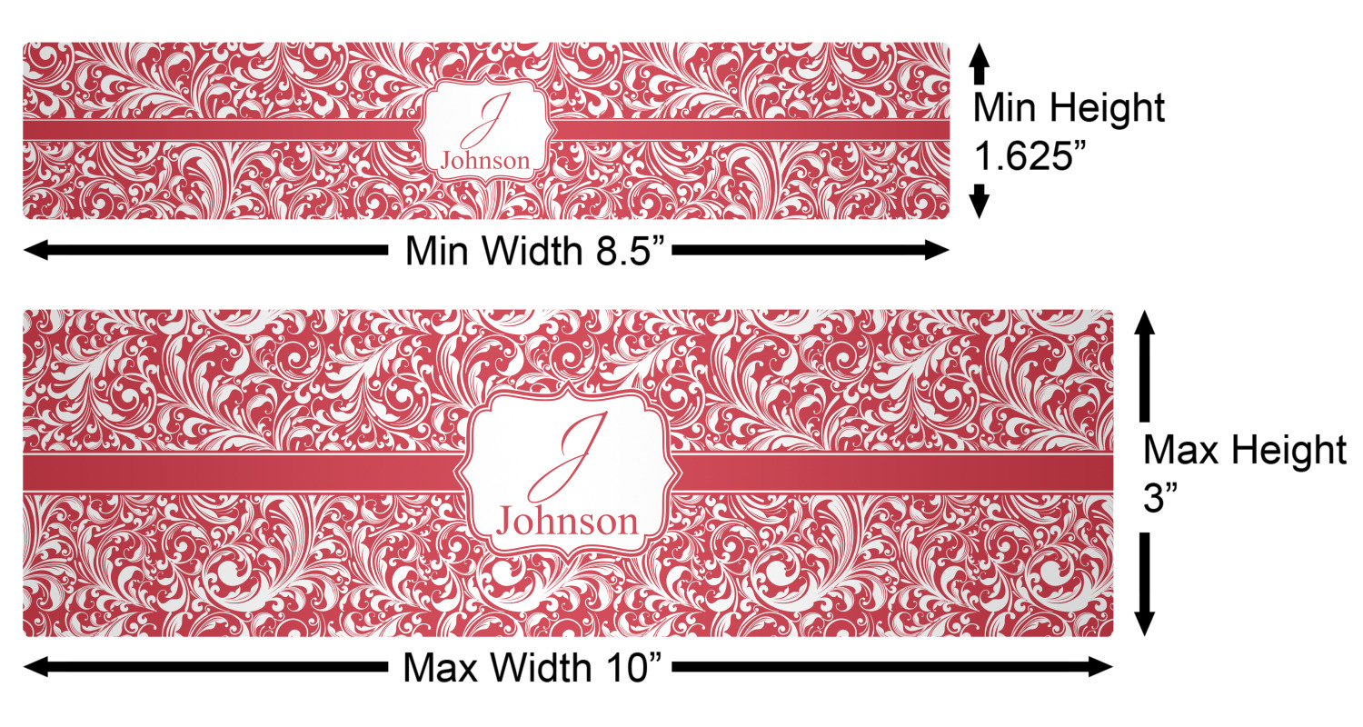 This fun and flirty pattern is available in multiple colors. The design has a classic ribbon in the color of you choice trimmed in white. The decorative white label is trimmed in the color of your choice. Add an initial and a name for that personal touch to pull the entire design together.