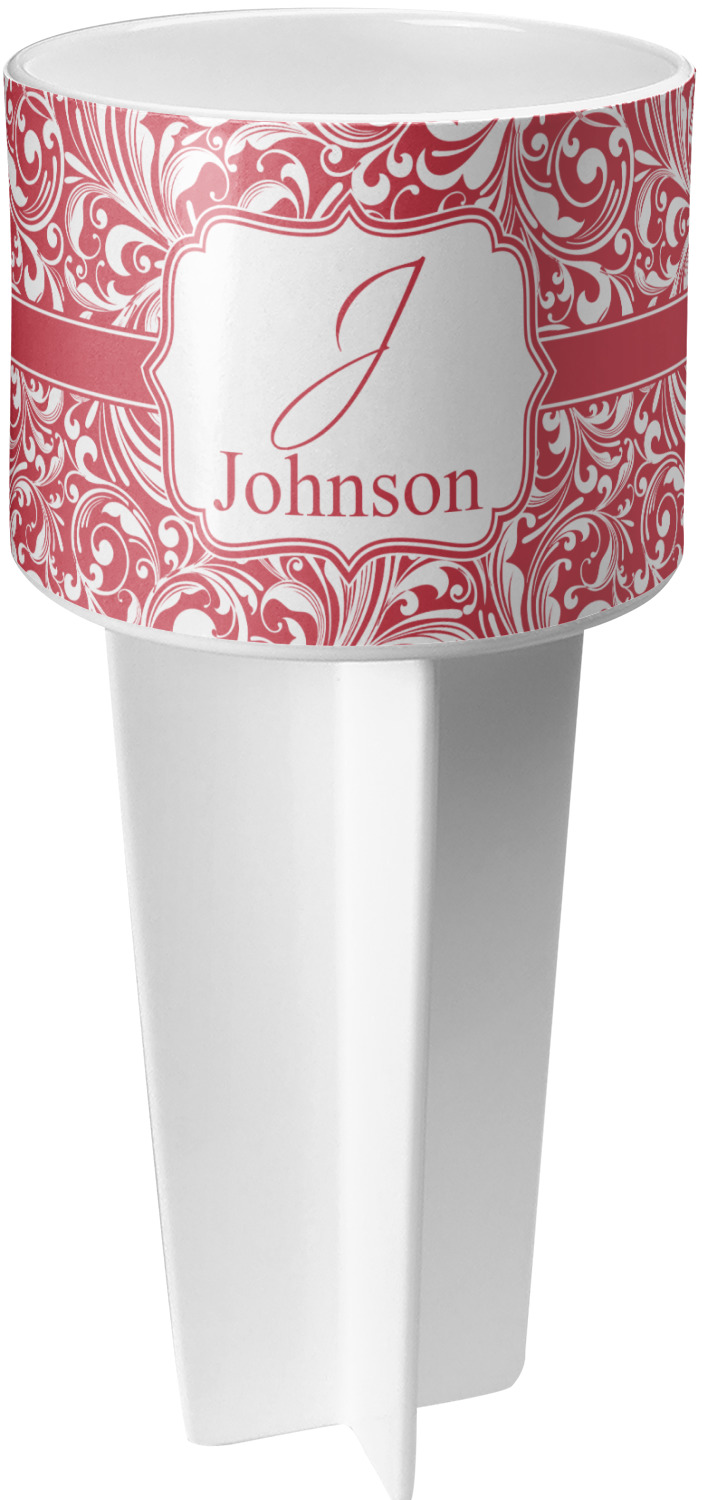 This cup holder has a large stake at its bottom that anchors it to the sand or ground below, while the cup holder rests above the stake. The entire drink holder is made of durable plastic and displays your customization around the cup holder portion. We sell these personalized beach spikers in two different colors: black and white.
