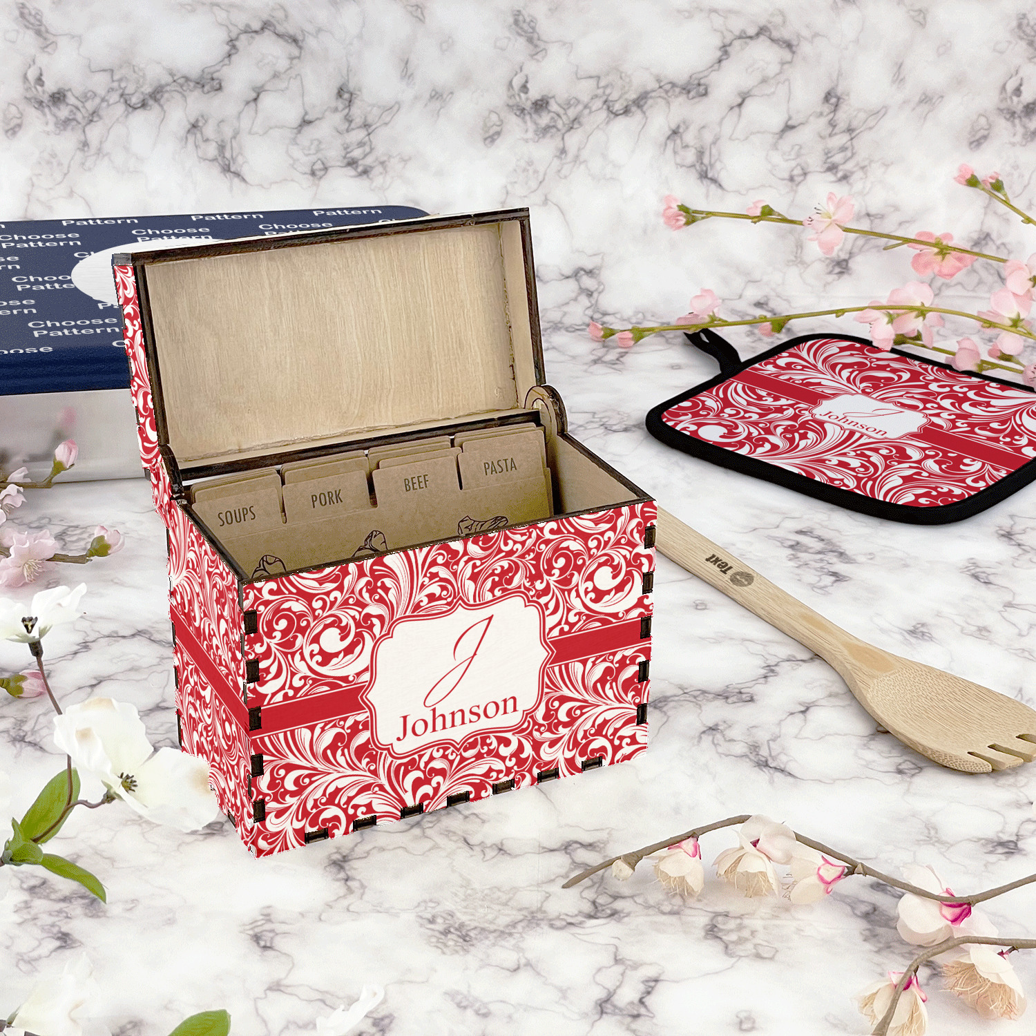 For a classic look for your kitchen counter to hold all of your family heirloom recipes look no further than this full color printed wood recipe box. These recipe boxes are sure to add a nice custom touch to your kitchen and allow you to proudly display your treasured family recipes in a beautiful custom recipe box.