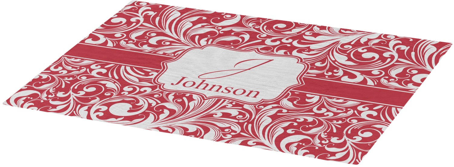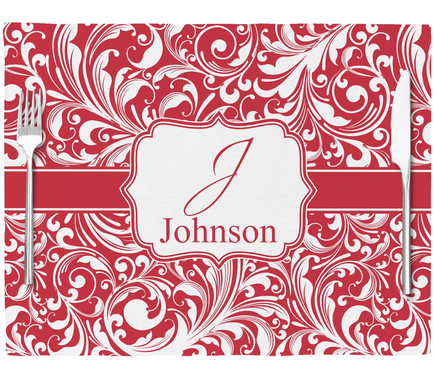 Each of our table mats are a poly twill material with woven burlap detailing. This creates a soft, quality placemat for us to fully print your personalized design across. The woven twill also adds a wrinkle-free surface to set your table! Each customizable placemat is a rectangle shape measuring at approximately 13 x 18 and printed here in the USA.