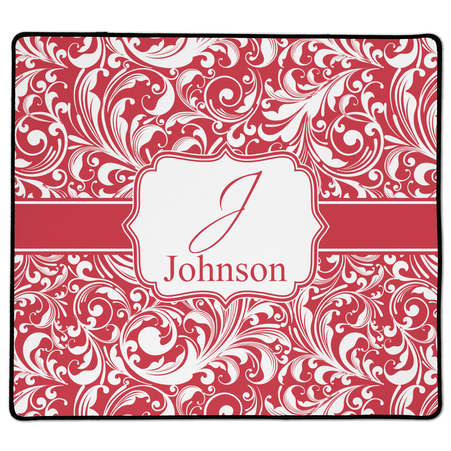 This fun and flirty pattern is available in multiple colors. The design has a classic ribbon in the color of you choice trimmed in white. The decorative white label is trimmed in the color of your choice. Add an initial and a name for that personal touch to pull the entire design together.