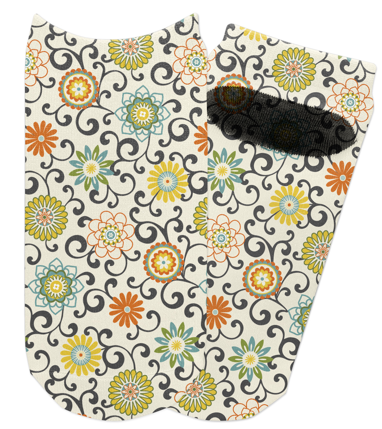 Love those 1970 retro colors but don't love the designs that come with the look? We have brought retro back to being relevant with this gorgeous swirls and floral pattern. The design renews the orange, green, blue, and yellow but adds a modern twist by using dark gray. The floral pattern is set on an off white background to make this print come to life