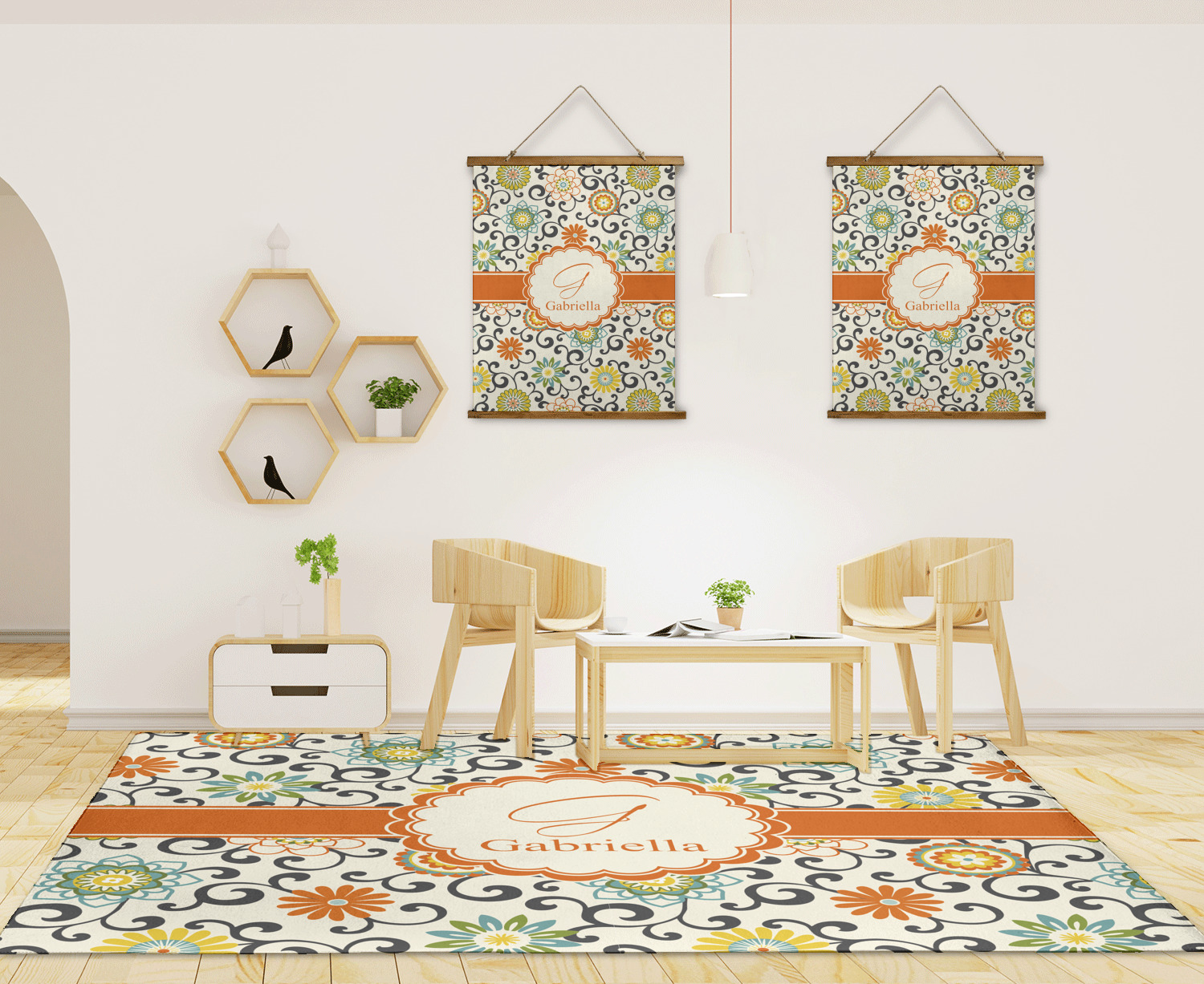 Love those 1970 retro colors but don't love the designs that come with the look? We have brought retro back to being relevant with this gorgeous swirls and floral pattern. The design renews the orange, green, blue, and yellow but adds a modern twist by using dark gray. The floral pattern is set on an off white background to make this print come to life