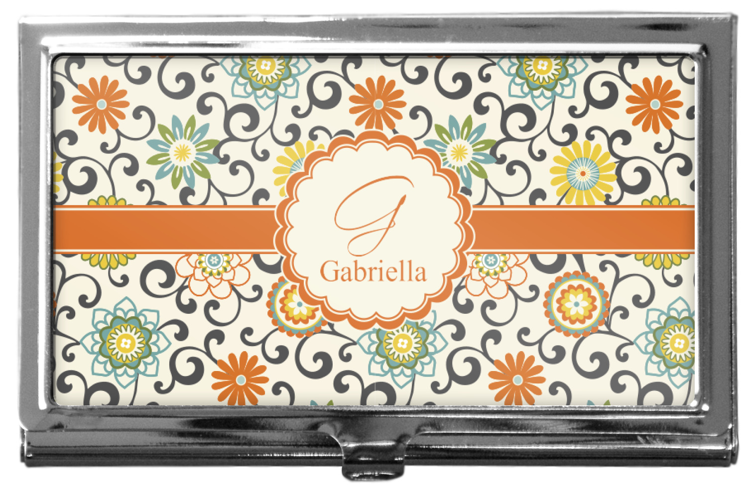 Our personalized business card holders are built from a robust, stainless steel and shaped into a sleek rectangle. At 3.75" x 2.5", and 0.25" thick, this nifty accessory holds up to 12 to 15 business cards, depending on the thickness of the cards themselves. Regardless, the skinny style makes it the perfect fit for your purse or pocket. The lid of your custom business card holder features a protruding tab to open and close your holder with a snap. To protect the mint condition of your cards, the interior of this metal business card holder is lined with a soft, felt fabric. We print your personalized design across the face of the lid.