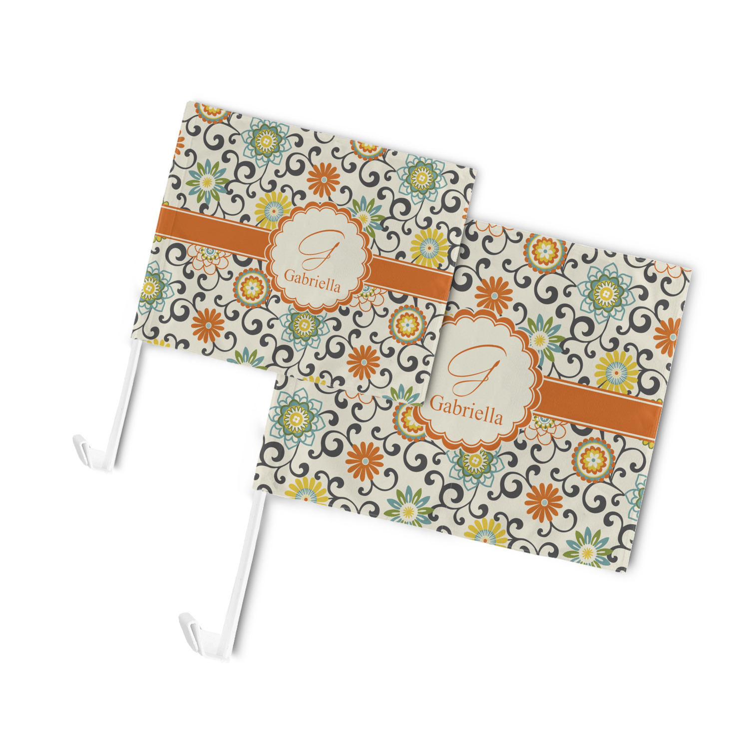Our personalized flags are made from a durable, yet lightweight cloth that will proudly bear your logo or design of choice, while withstanding the outside elements. We have two size options - 8" x 11" and 11" x 15". Both come with a flag pole which includes a clip that secures the pole to the side window, whether it is rolled up or down. The flags are printed on both sides to display your design from all directions.