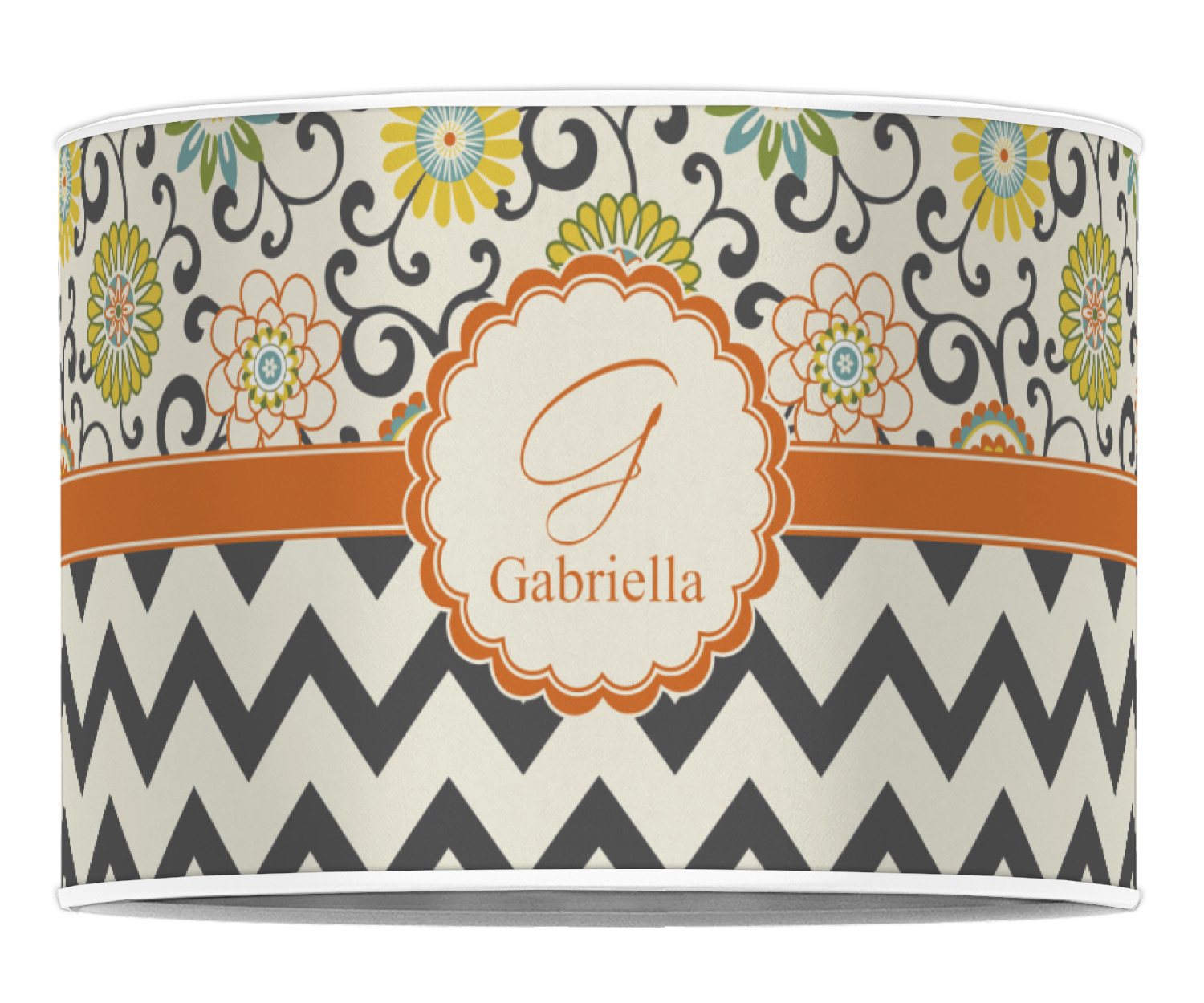 Love those 1970 retro colors but don't love the designs that come with the look? We have brought retro back to being relevant with this gorgeous swirls and floral pattern with a modern chevron pairing. The top of the design renews the orange, green, blue, and yellow but adds a modern twist by using dark gray. The floral pattern is set on a background of white to make this print come to life. The bottom of the design has the classic dark gray and white chevron print