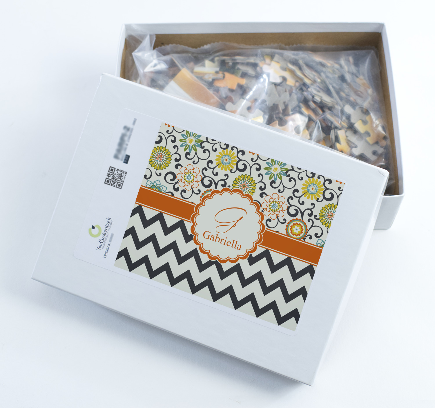 You can also upload your logo or art that you or your kids drew. To create more challenging jigsaw puzzles, you can create a pattern from with your logo or artwork. You can also add other elements such as text or personalization.