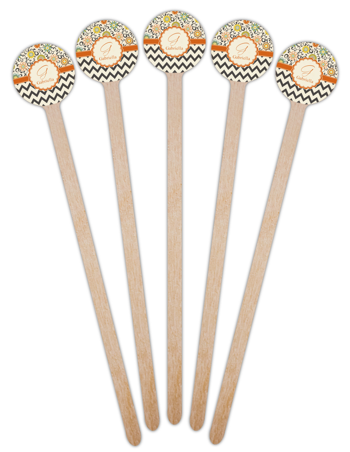 The design has a classic ribbon in orange trimmed in white. The decorative white scalloped label is trimmed in orange. Add an initial and a name for that personal touch to pull the entire design together.
