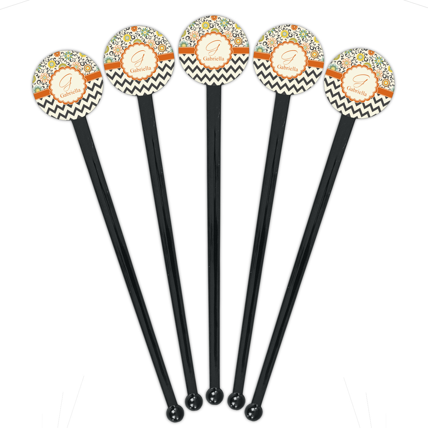 The design has a classic ribbon in orange trimmed in white. The decorative white scalloped label is trimmed in orange. Add an initial and a name for that personal touch to pull the entire design together.