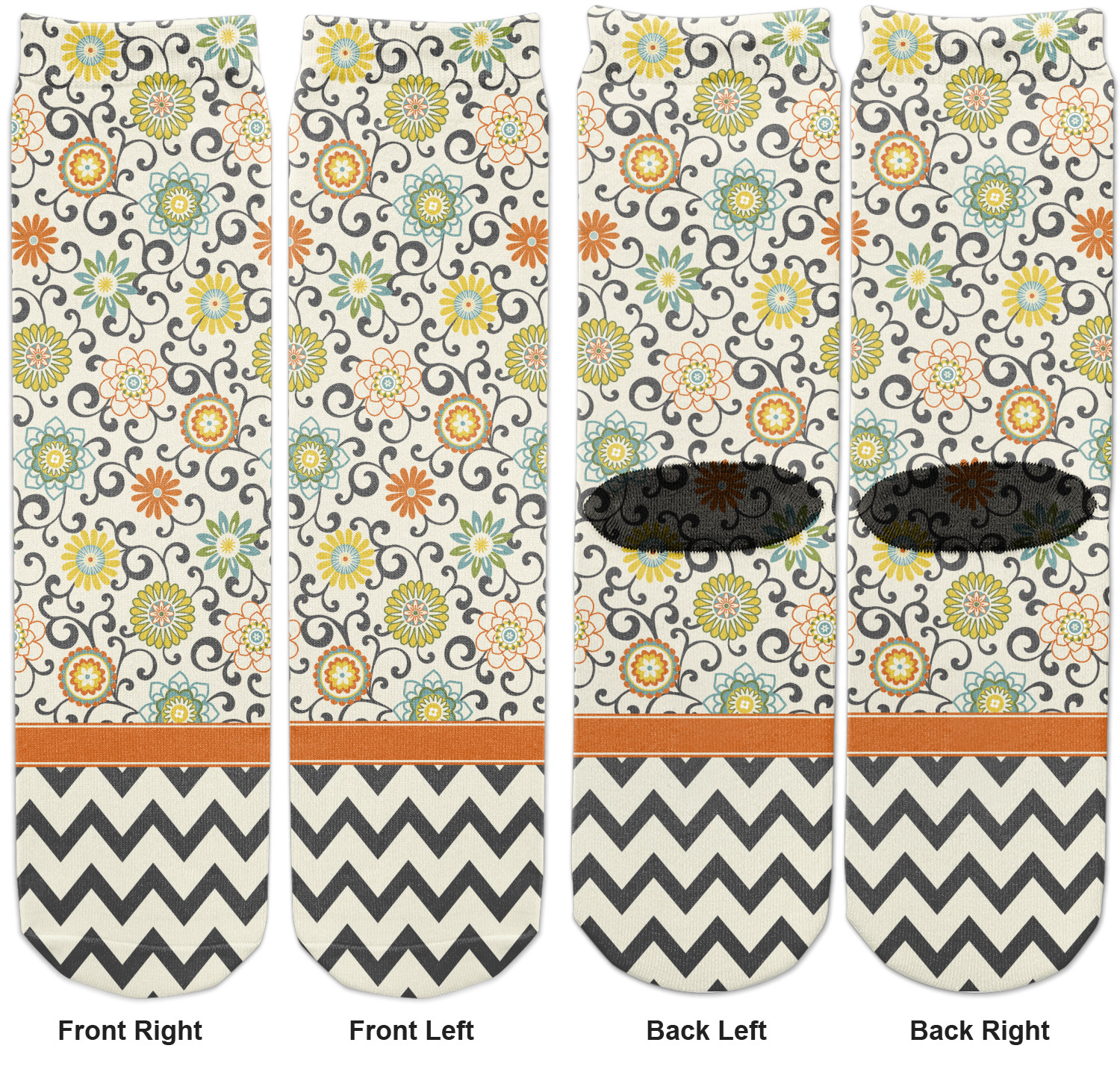 Love those 1970 retro colors but don't love the designs that come with the look? We have brought retro back to being relevant with this gorgeous swirls and floral pattern with a modern chevron pairing. The top of the design renews the orange, green, blue, and yellow but adds a modern twist by using dark gray. The floral pattern is set on a background of white to make this print come to life. The bottom of the design has the classic dark gray and white chevron print