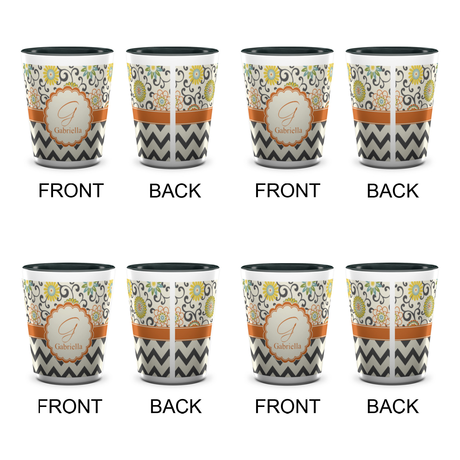 Made from ceramic these shot glasses are printed in full color with the design of your choice. These are a standard 1.5oz size and stand 2.25" tall. Available in a full white ceramic or a two-tone with a black color inside the shot glass. Buy a single or a set of 4, all of which can be designed separately to get you just what you want and need.