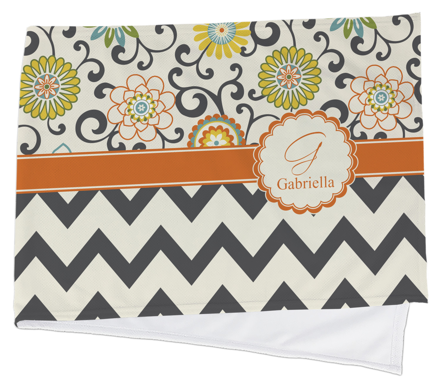 Love those 1970 retro colors but don't love the designs that come with the look? We have brought retro back to being relevant with this gorgeous swirls and floral pattern with a modern chevron pairing. The top of the design renews the orange, green, blue, and yellow but adds a modern twist by using dark gray. The floral pattern is set on a background of white to make this print come to life. The bottom of the design has the classic dark gray and white chevron print