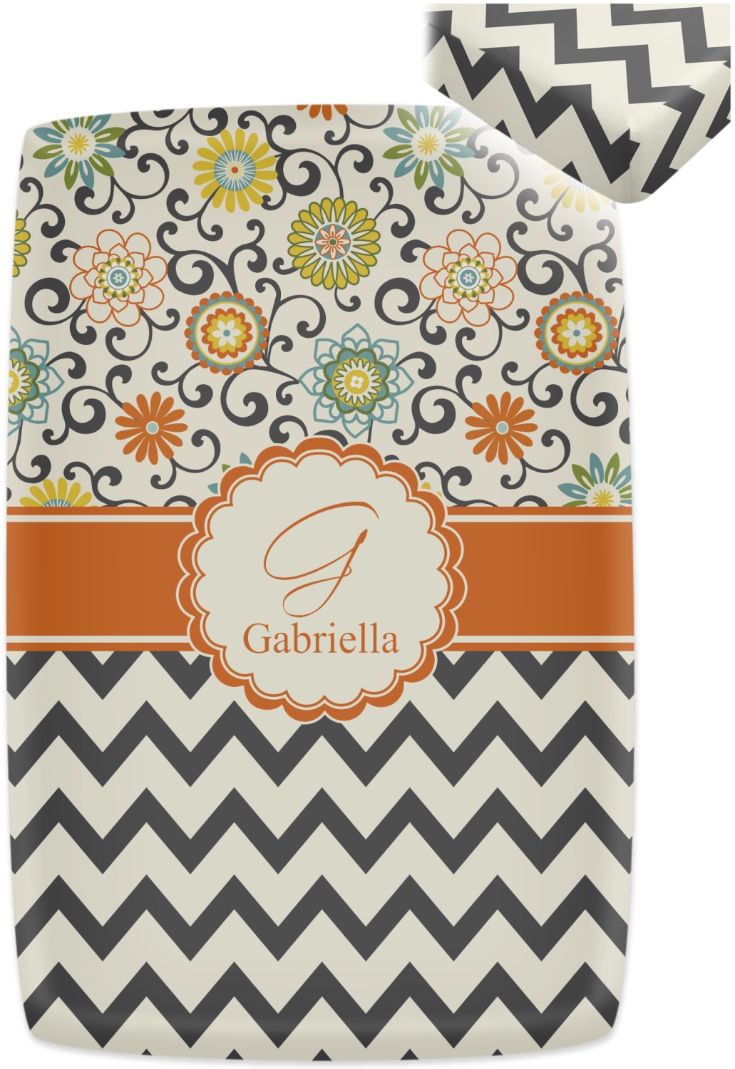 Love those 1970 retro colors but don't love the designs that come with the look? We have brought retro back to being relevant with this gorgeous swirls and floral pattern with a modern chevron pairing. The top of the design renews the orange, green, blue, and yellow but adds a modern twist by using dark gray. The floral pattern is set on a background of white to make this print come to life. The bottom of the design has the classic dark gray and white chevron print