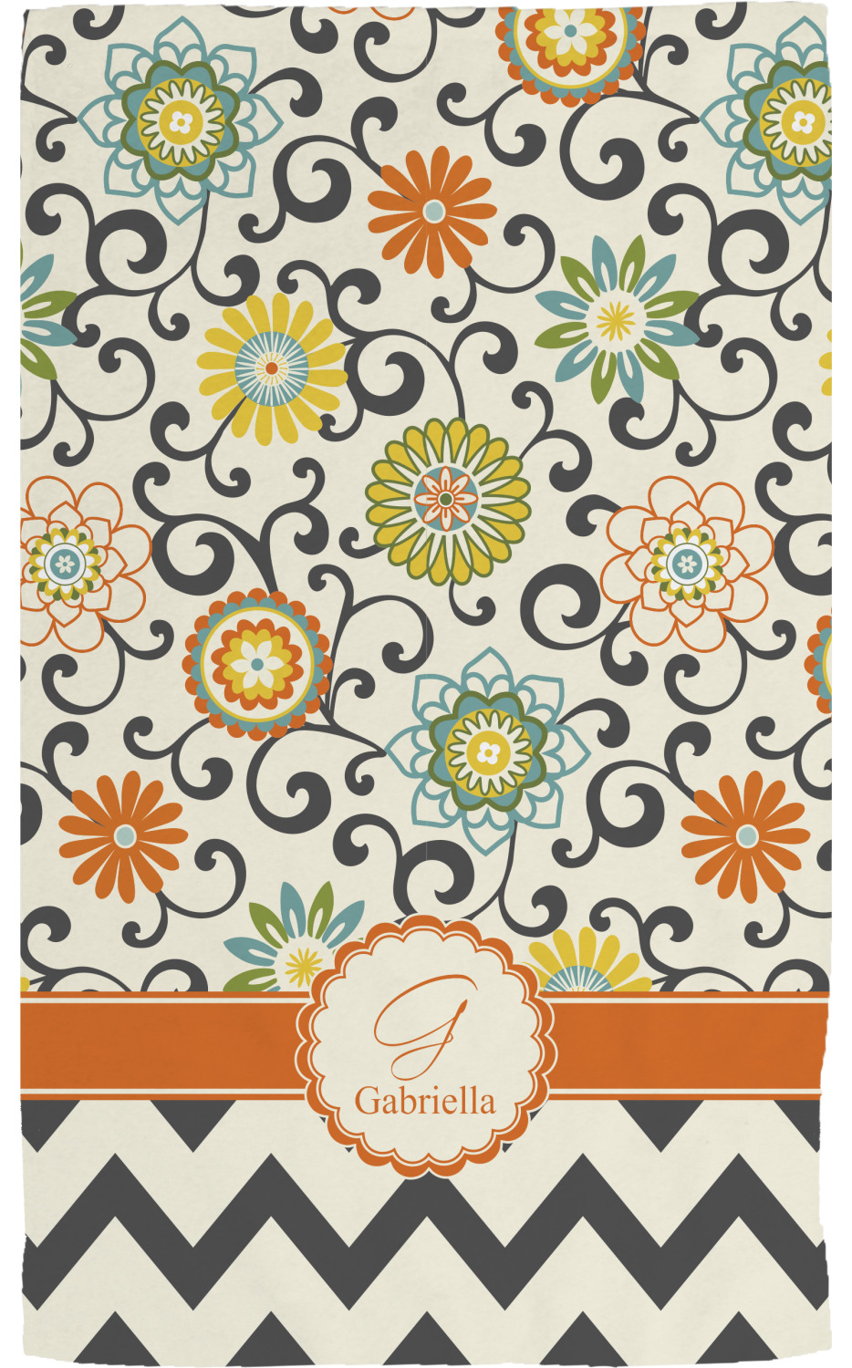 Love those 1970 retro colors but don't love the designs that come with the look? We have brought retro back to being relevant with this gorgeous swirls and floral pattern with a modern chevron pairing. The top of the design renews the orange, green, blue, and yellow but adds a modern twist by using dark gray. The floral pattern is set on a background of white to make this print come to life. The bottom of the design has the classic dark gray and white chevron print