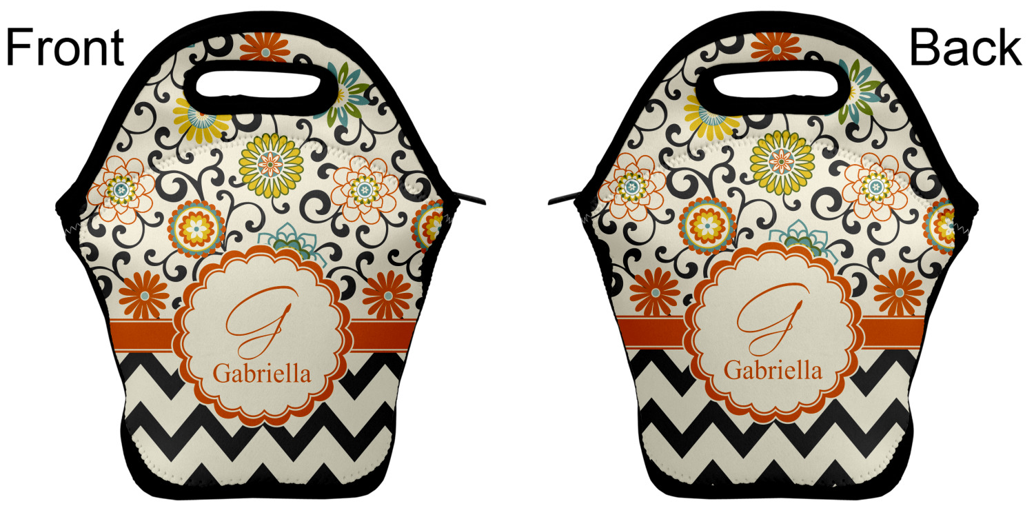 Our personalized lunch bags are made from a strong neoprene, and secure with a zipper closure that lines the top of the bag.The edges of the neoprene are sewn together with a heavy duty stitch, adding to the durability of the bag. The is accompanied by a reinforced handle at its top, for the easy transport of your lunch. We display your personalization across both the front and back of this neoprene lunch bag, while the remaining sides are a sleek black in color. Each bag measures at 13.5 inches tall, and 11.5 inches wide.