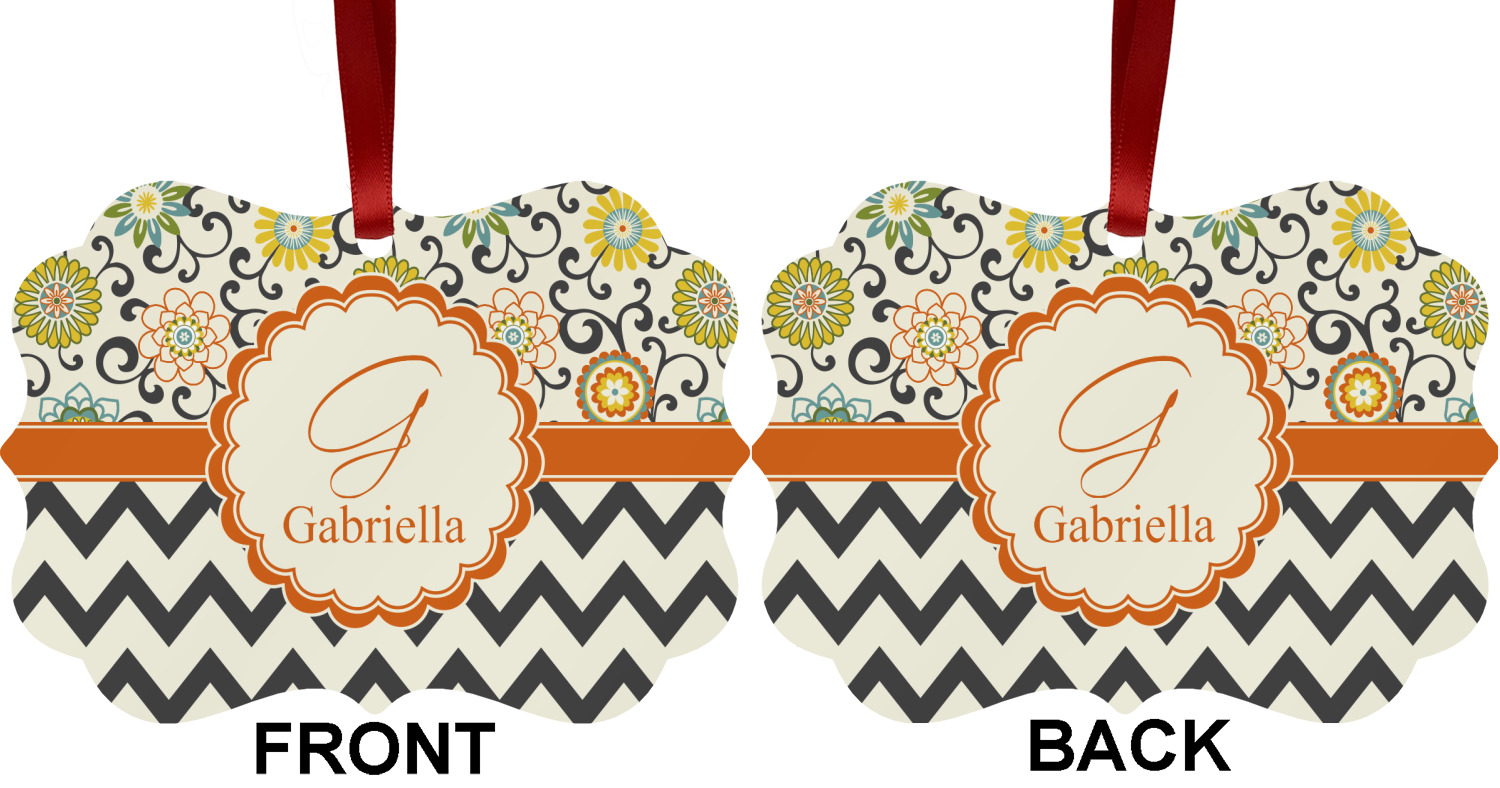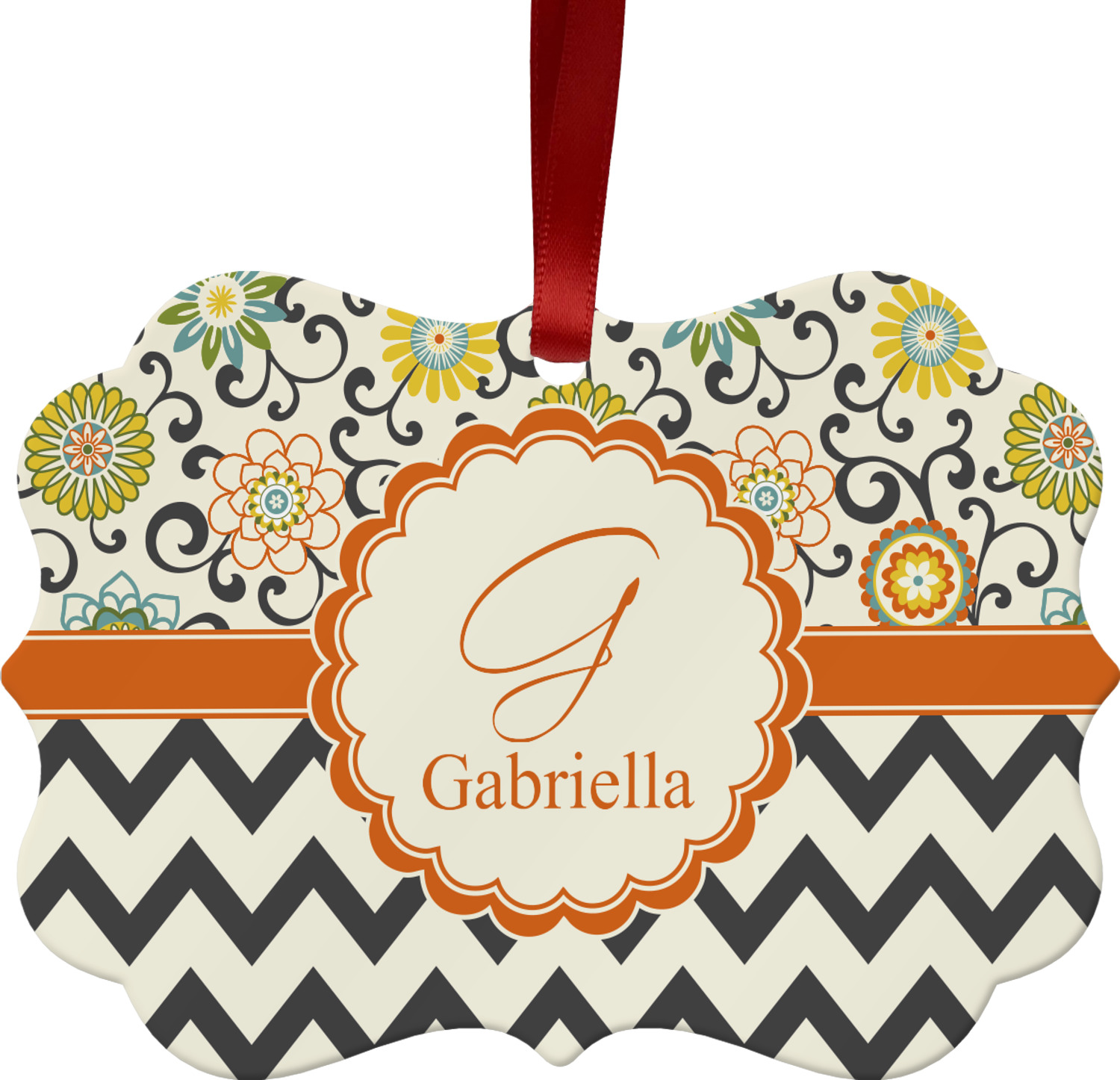 The design has a classic ribbon in orange trimmed in white. The decorative white scalloped label is trimmed in orange. Add an initial and a name for that personal touch to pull the entire design together.