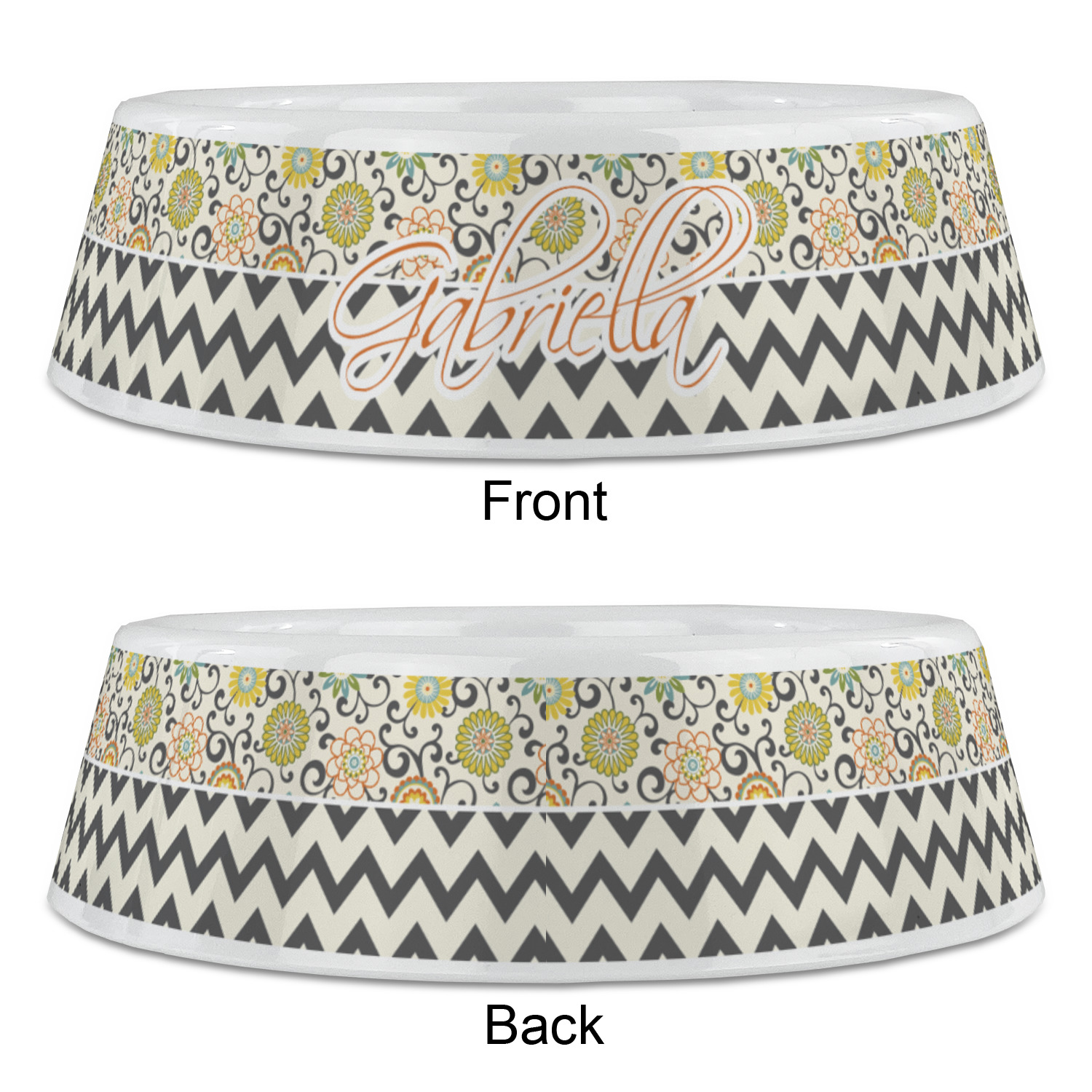 The design has a classic ribbon in orange trimmed in white. The decorative white scalloped label is trimmed in orange. Add an initial and a name for that personal touch to pull the entire design together.