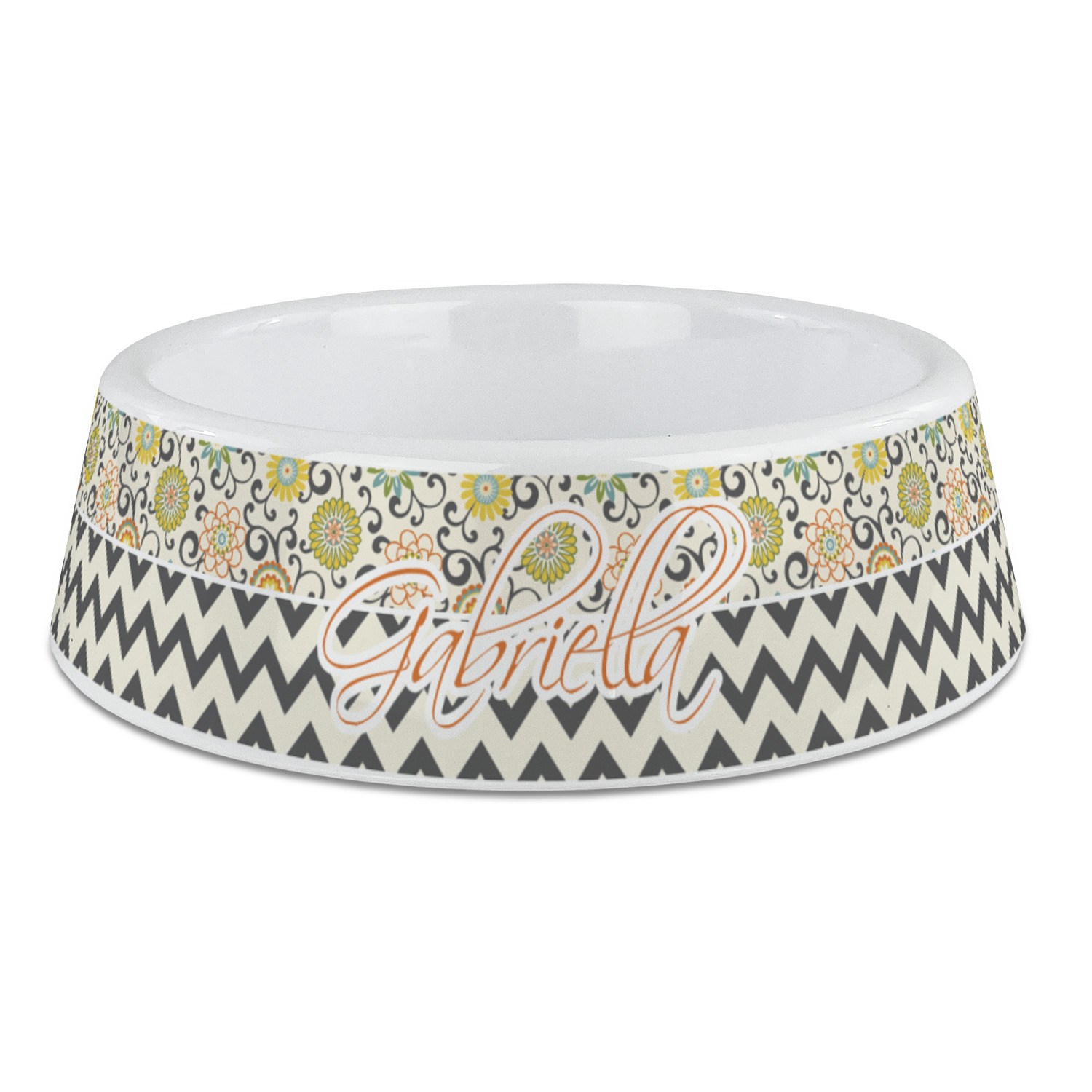 Love those 1970 retro colors but don't love the designs that come with the look? We have brought retro back to being relevant with this gorgeous swirls and floral pattern with a modern chevron pairing. The top of the design renews the orange, green, blue, and yellow but adds a modern twist by using dark gray. The floral pattern is set on a background of white to make this print come to life. The bottom of the design has the classic dark gray and white chevron print