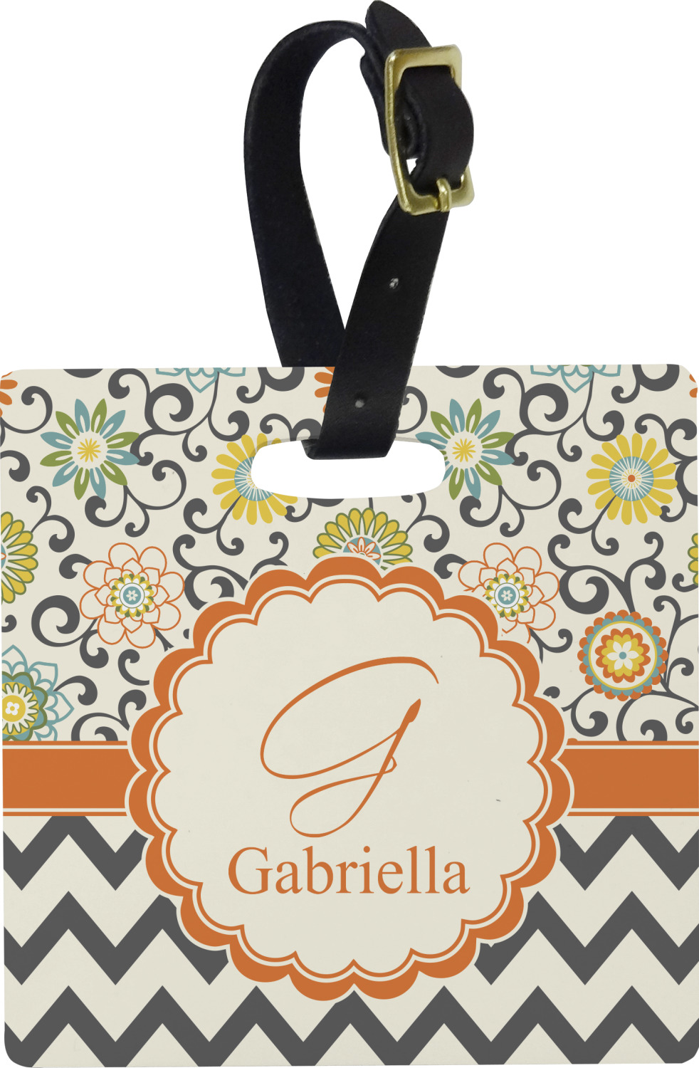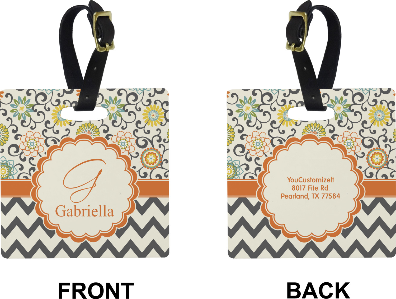 These personalized bag tags are sold in a variety of shapes, so that you may find the product that meets your vision exactly. We sell a round luggage tag, which measures at approximately 4" x 4". Our square luggage tag is about 3.5" x 3.5", while our rectangular version is 2.75" x 4 ".