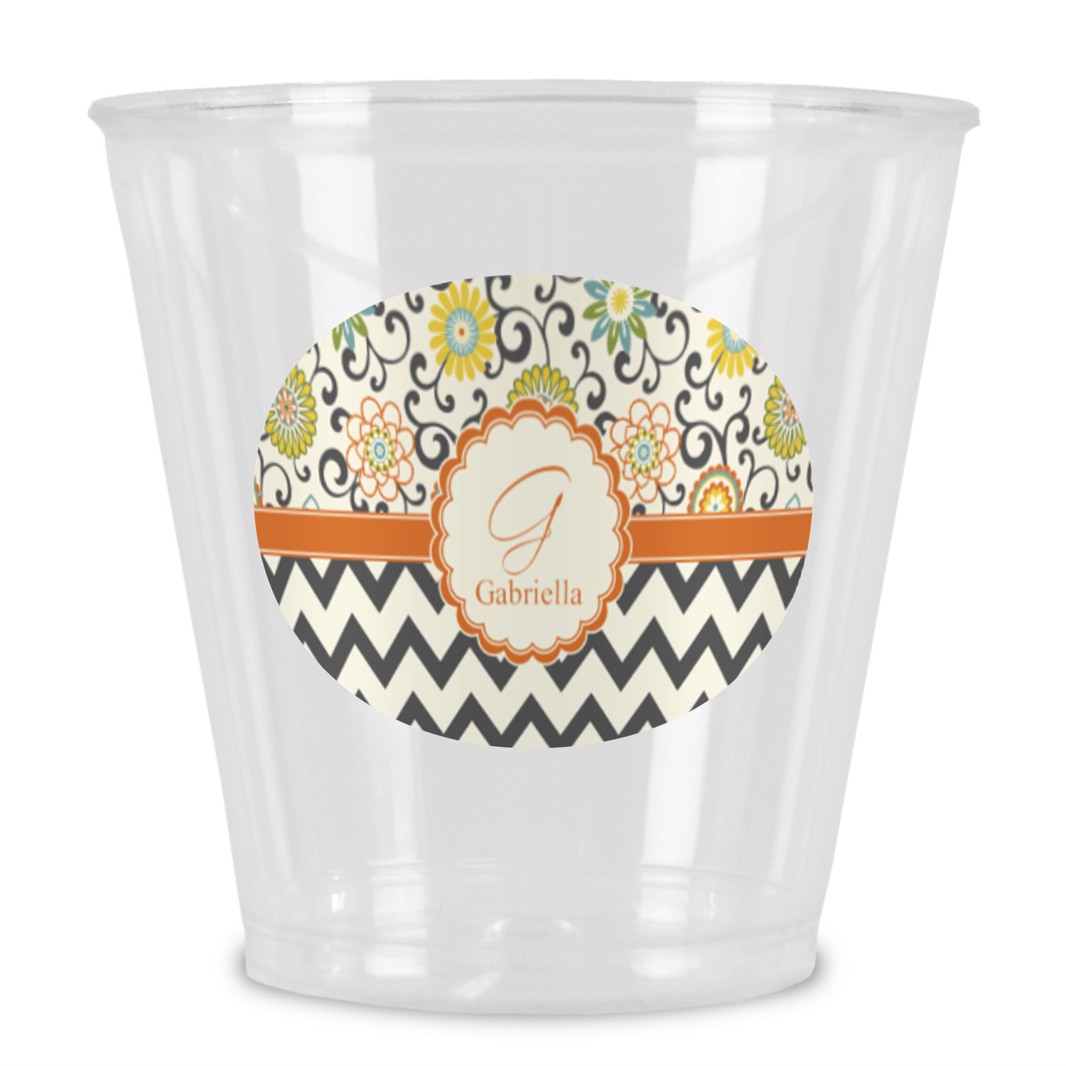 The design has a classic ribbon in orange trimmed in white. The decorative white scalloped label is trimmed in orange. Add an initial and a name for that personal touch to pull the entire design together.