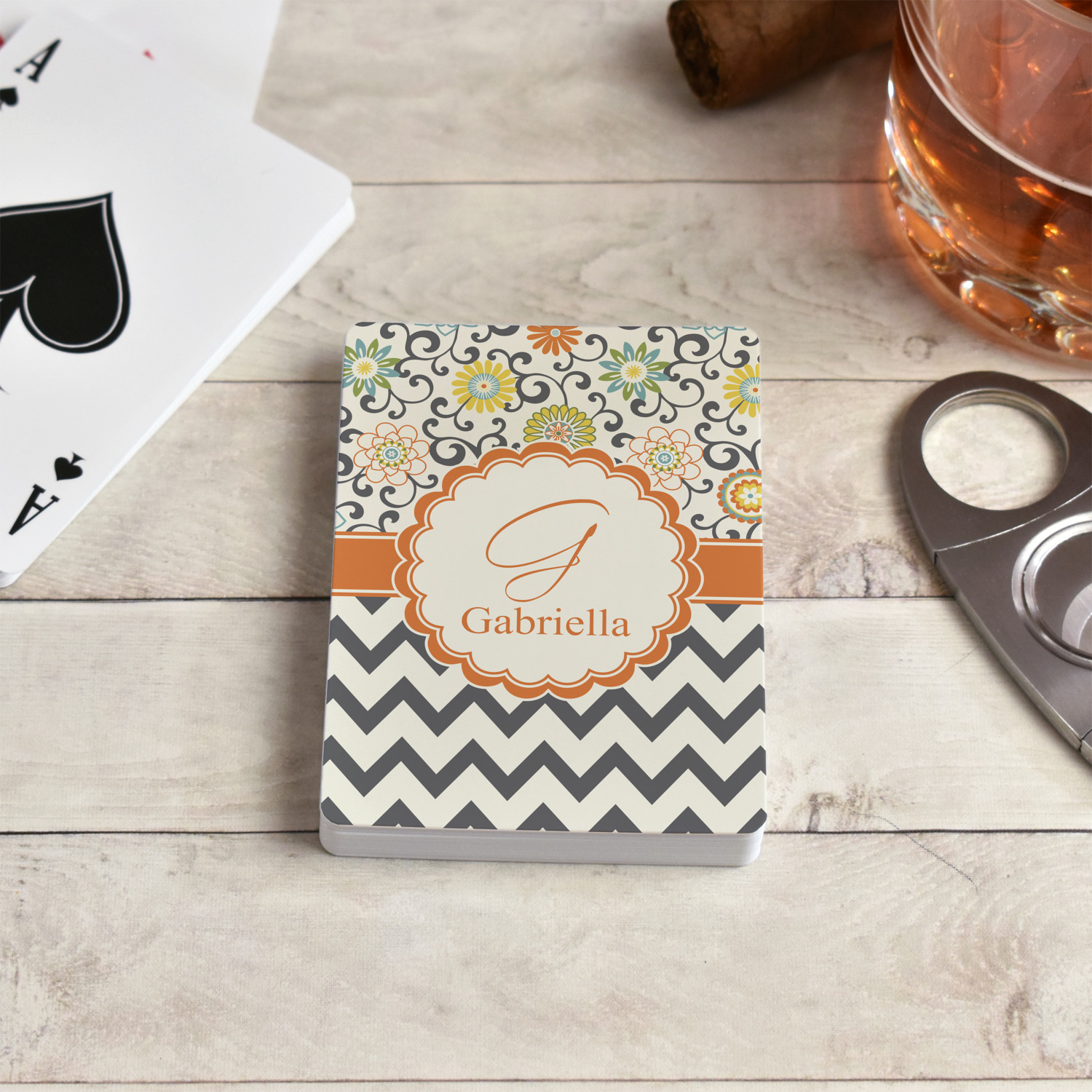 Here at YouCustomizeIt, you can customize your playing cards by uploading your own design, photo, or logo. We have design templates that you can customize by changing the patterns, colors, graphics, personalization styles, etc. - using our free for you to use in our design elements library.