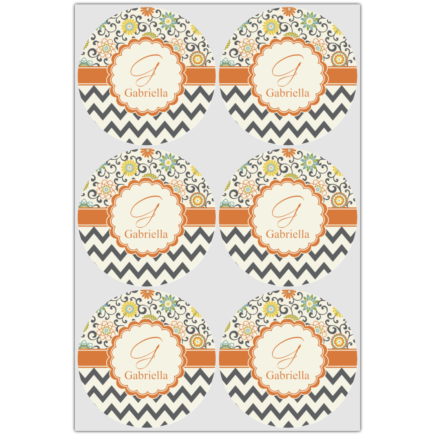 The design has a classic ribbon in orange trimmed in white. The decorative white scalloped label is trimmed in orange. Add an initial and a name for that personal touch to pull the entire design together.