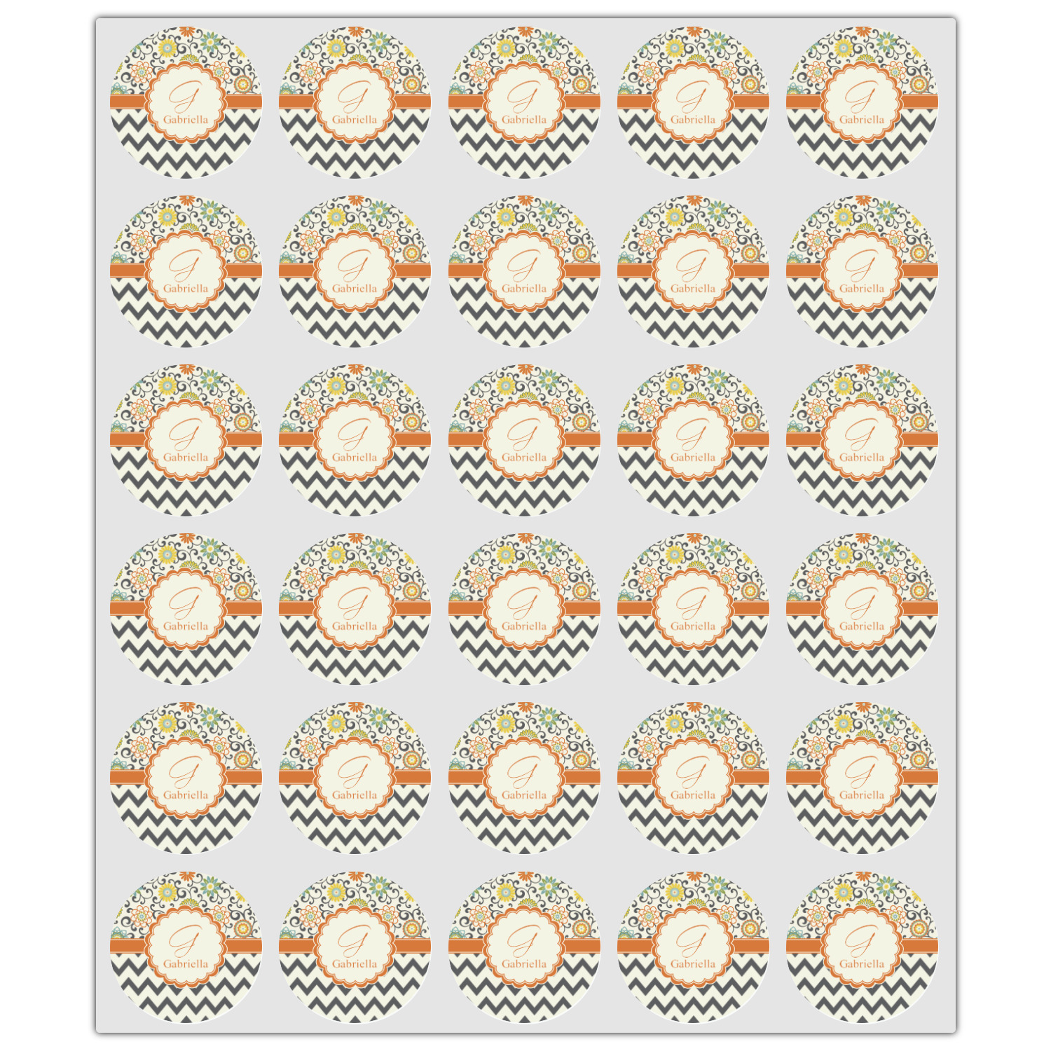 The design has a classic ribbon in orange trimmed in white. The decorative white scalloped label is trimmed in orange. Add an initial and a name for that personal touch to pull the entire design together.