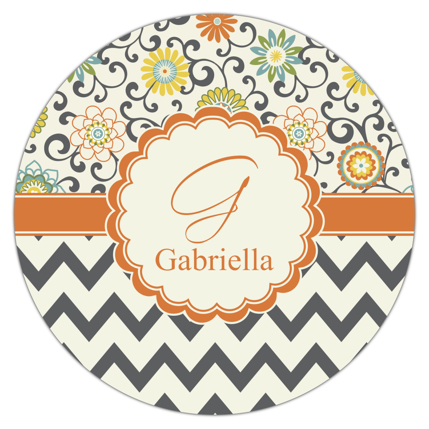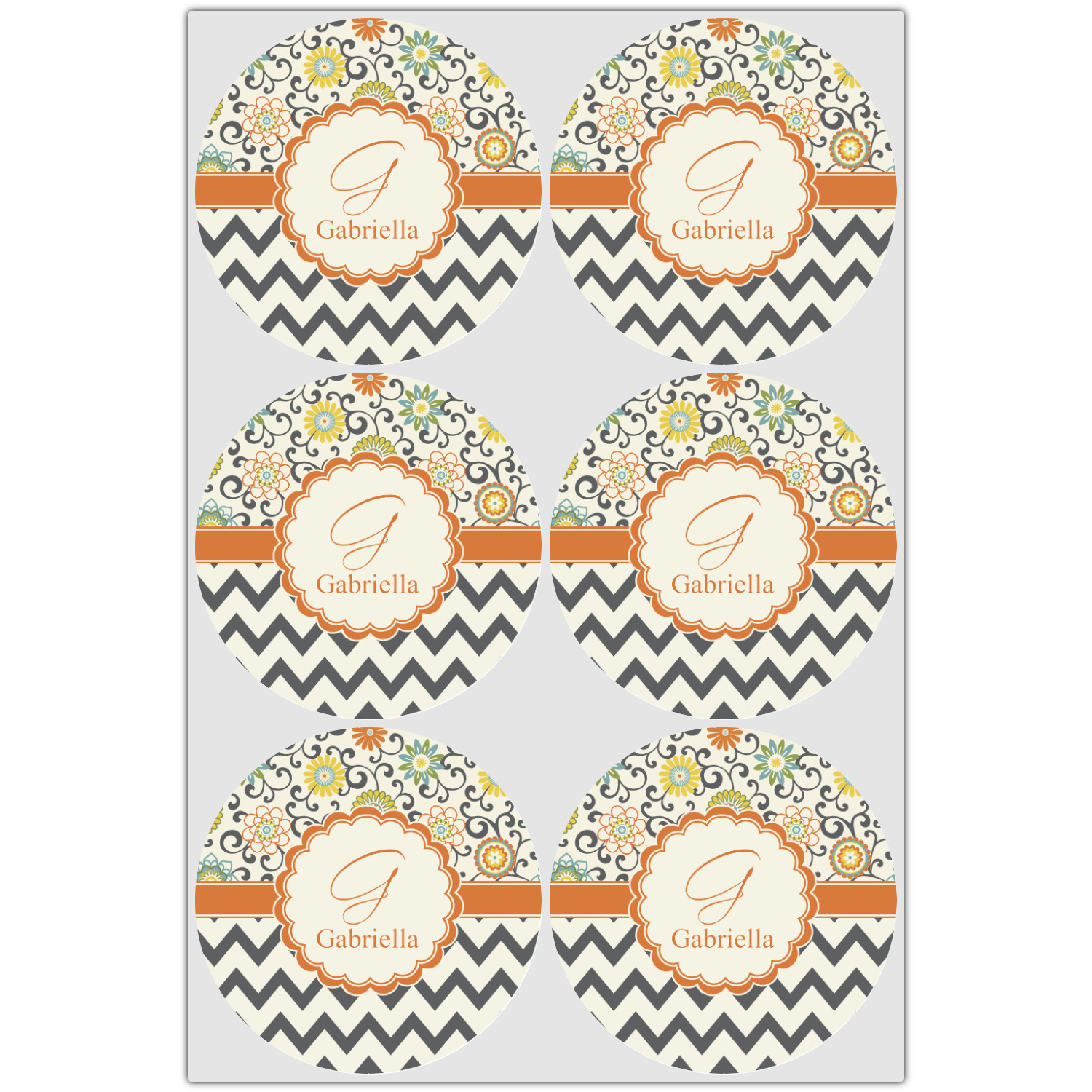 The design has a classic ribbon in orange trimmed in white. The decorative white scalloped label is trimmed in orange. Add an initial and a name for that personal touch to pull the entire design together.