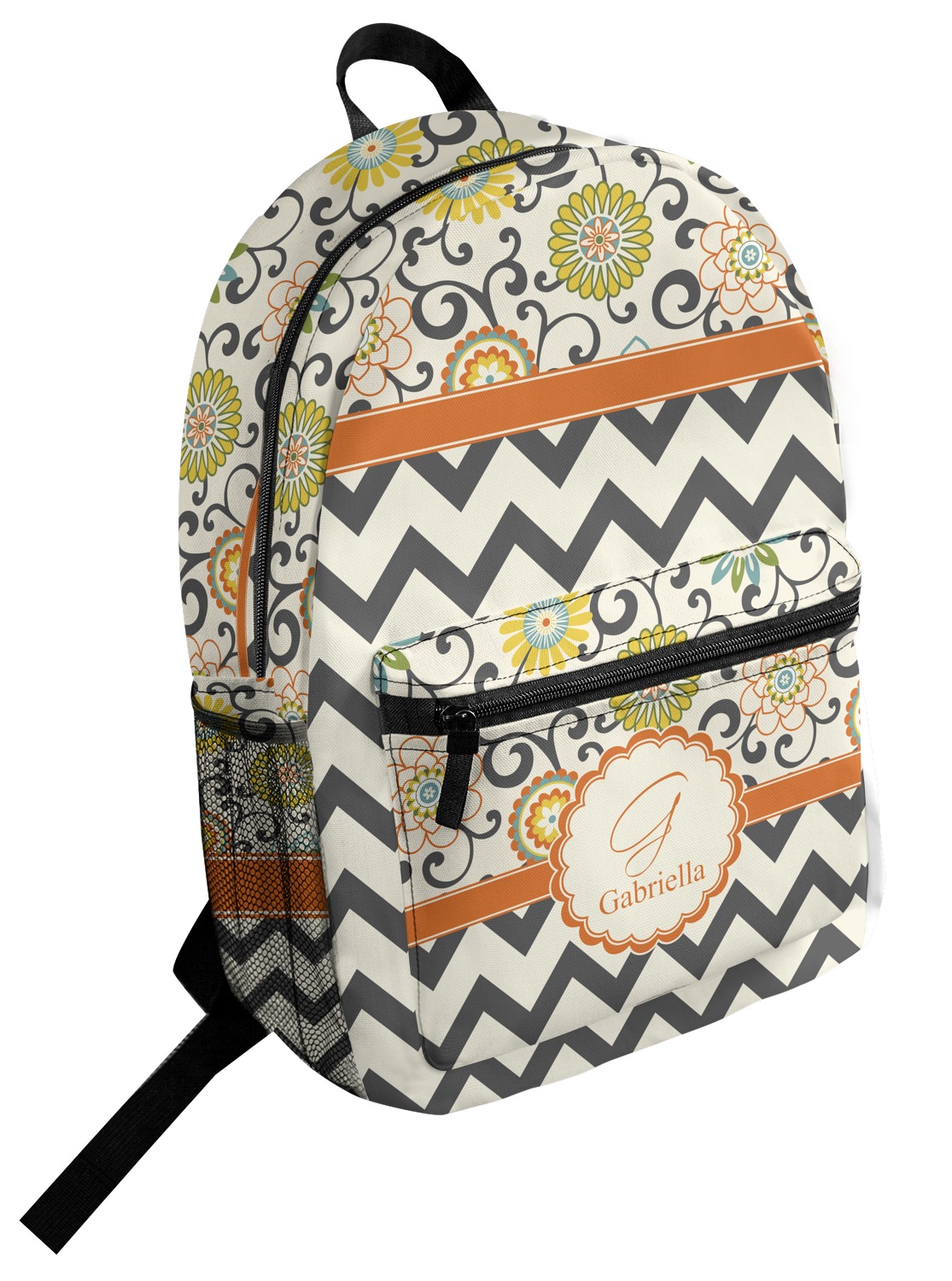 Love those 1970 retro colors but don't love the designs that come with the look? We have brought retro back to being relevant with this gorgeous swirls and floral pattern with a modern chevron pairing. The top of the design renews the orange, green, blue, and yellow but adds a modern twist by using dark gray. The floral pattern is set on a background of white to make this print come to life. The bottom of the design has the classic dark gray and white chevron print