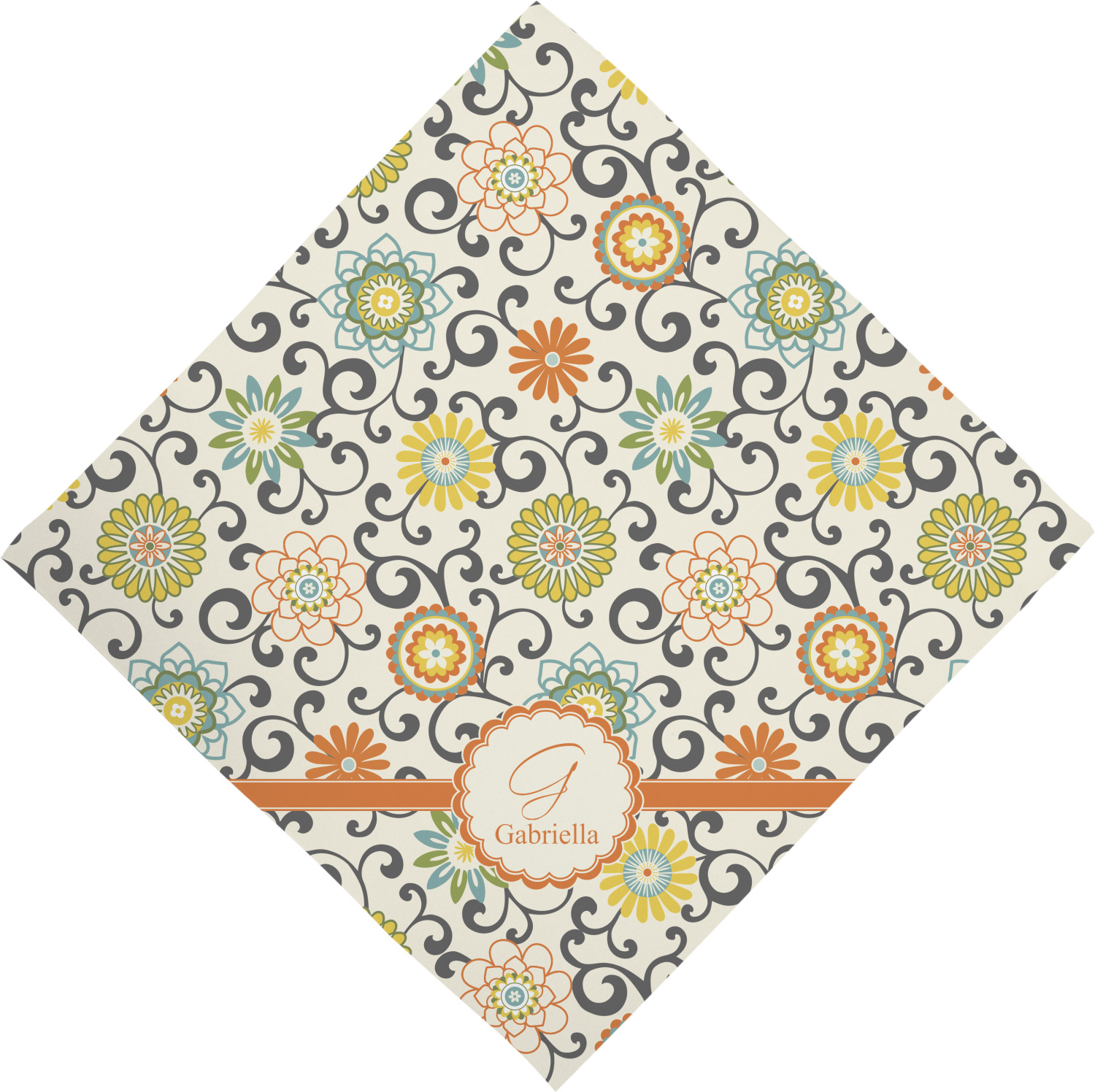 This beautiful pet bandana really is the perfect accessory. It is made from a silky feeling polyester and measures at approximately 23" x 23". Your personalization will be printed on a diagonal, so that you are able to read the personalization when folded into a triangle. This bandana fits best on large dogs, but can be folded smaller if there is no personalized text to fit smaller pets.