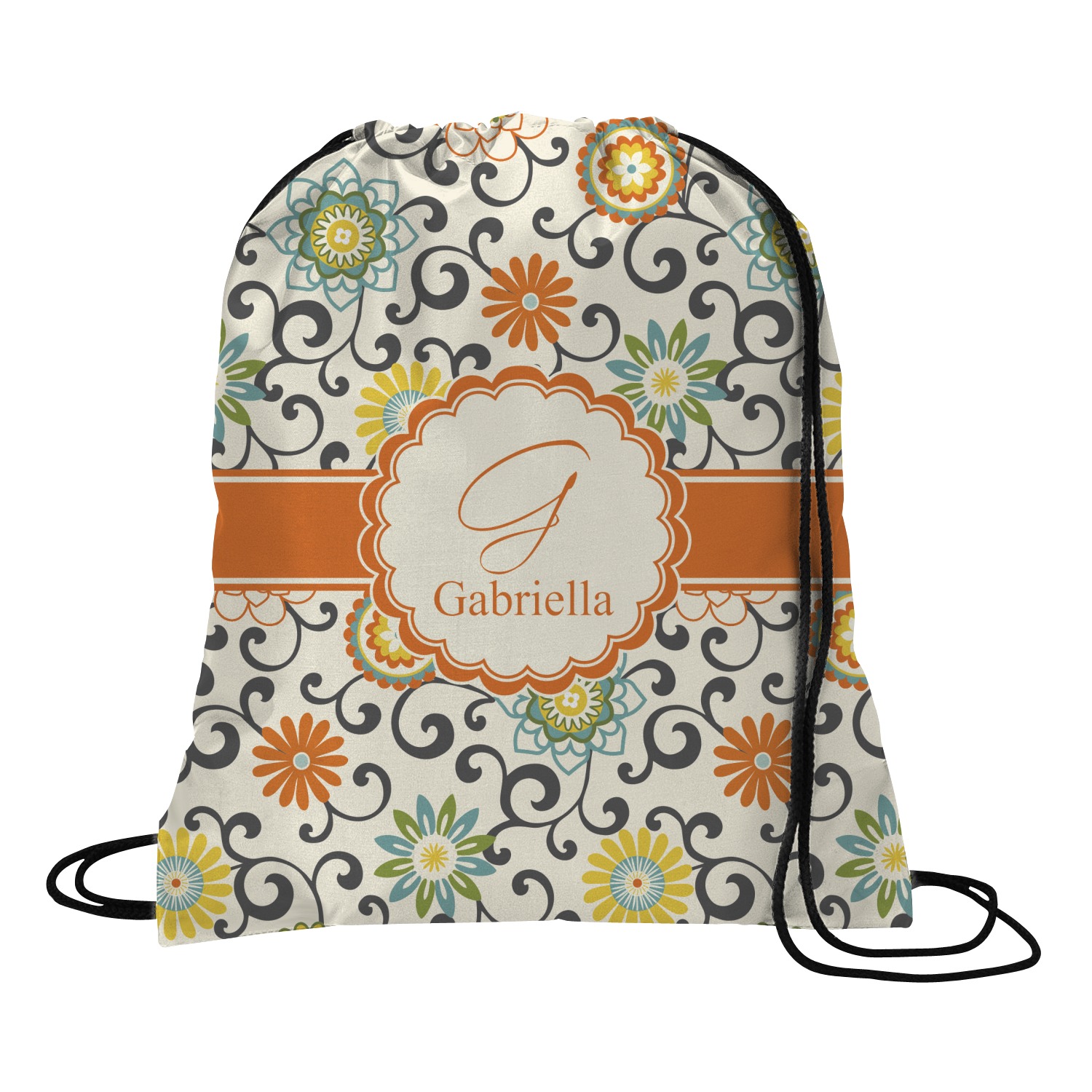 Our drawstring backpacks are custom made for you here in the USA. We offer a great selection of cinch bags and it is your choice to personalize them with the text of your choice, in the format of your choice i.e. monogram, name, initial, name & initial. We offer many different patterns and prints; and many of the patterns are available in 45 different colors.