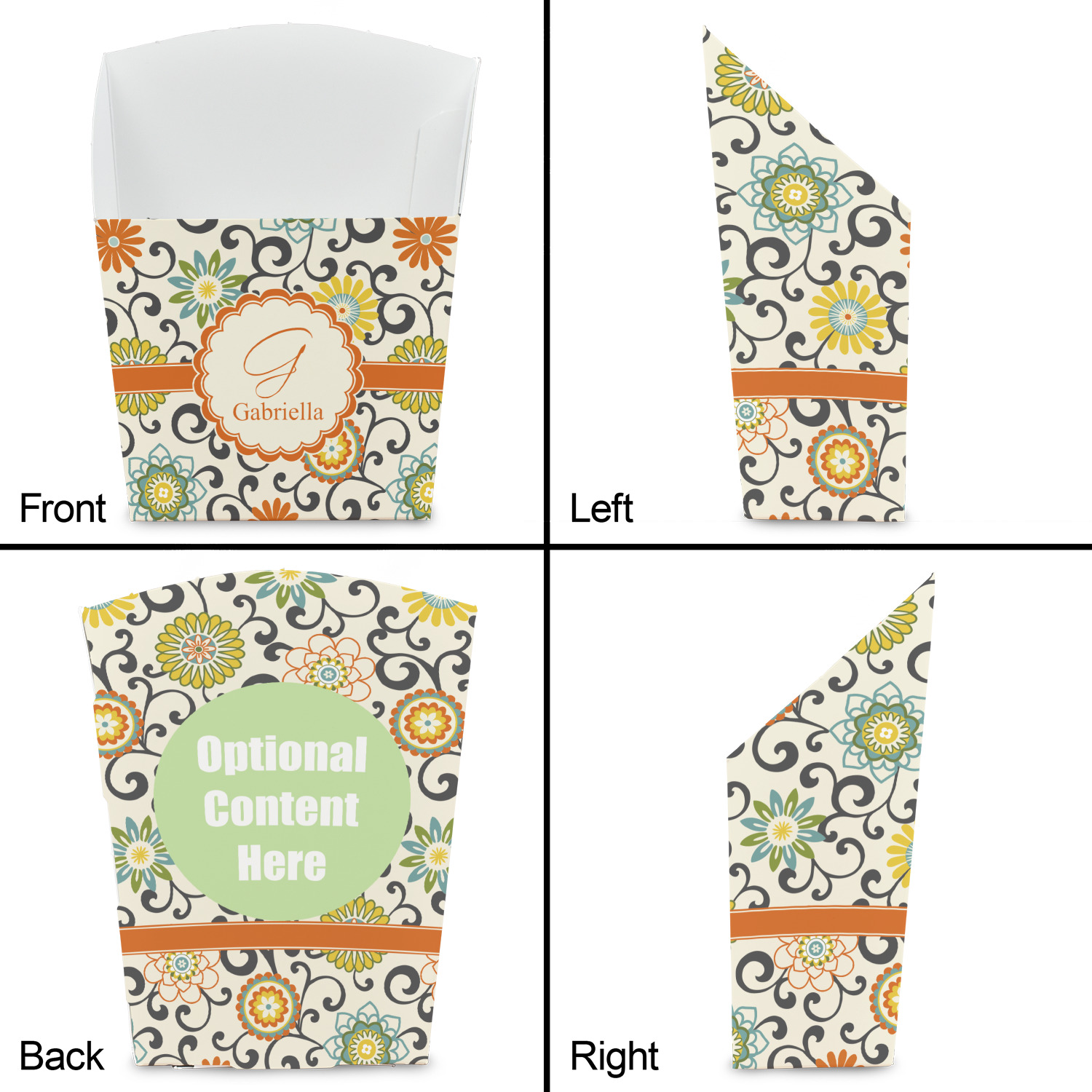 These favor boxes are printed in full color on quality cardstock - so coordinating the french fry favor boxes to match your event's themes or colors should be a breeze. You can upload your own design including artwork, logos or photos