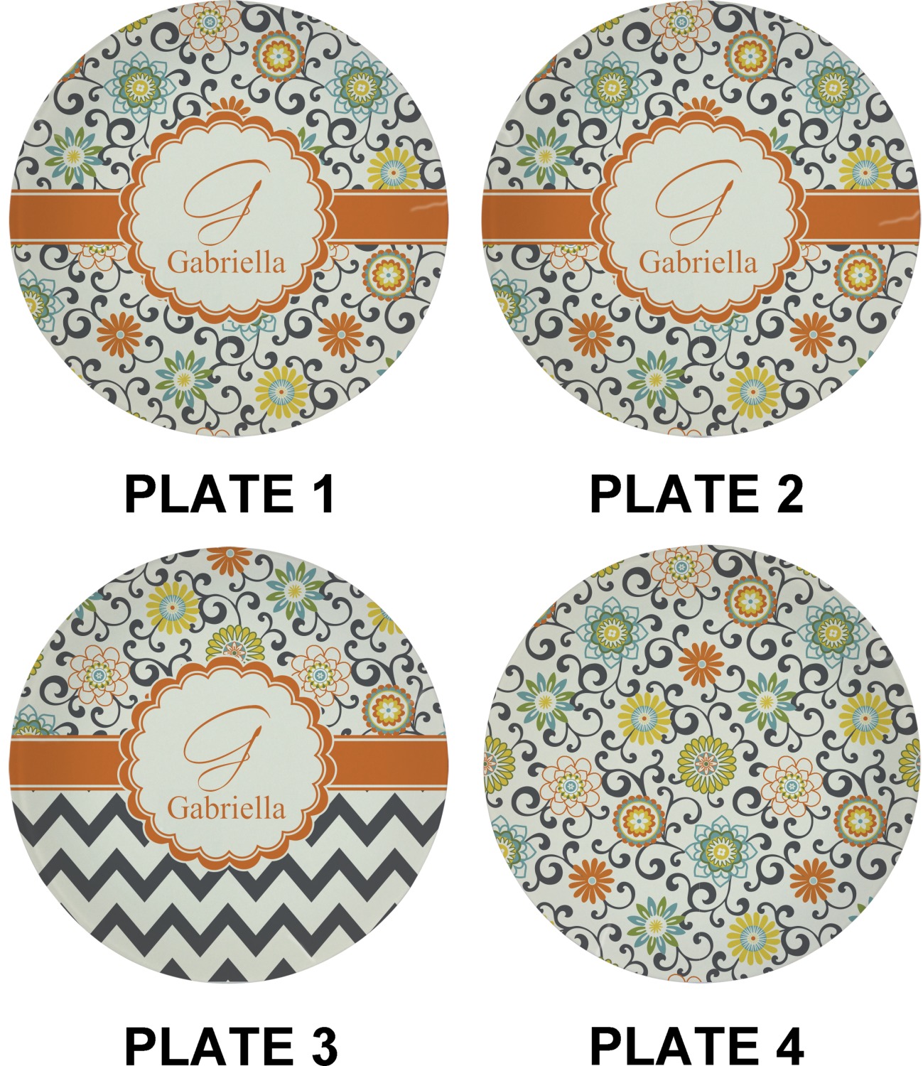 With a of designs and patterns, these plates are completely customizable. Choose a foodie design, complete with red-hot chili peppers, or go classic with stripes or plaid. Include your monogram or family name to make sure these plates never get lost at parties!