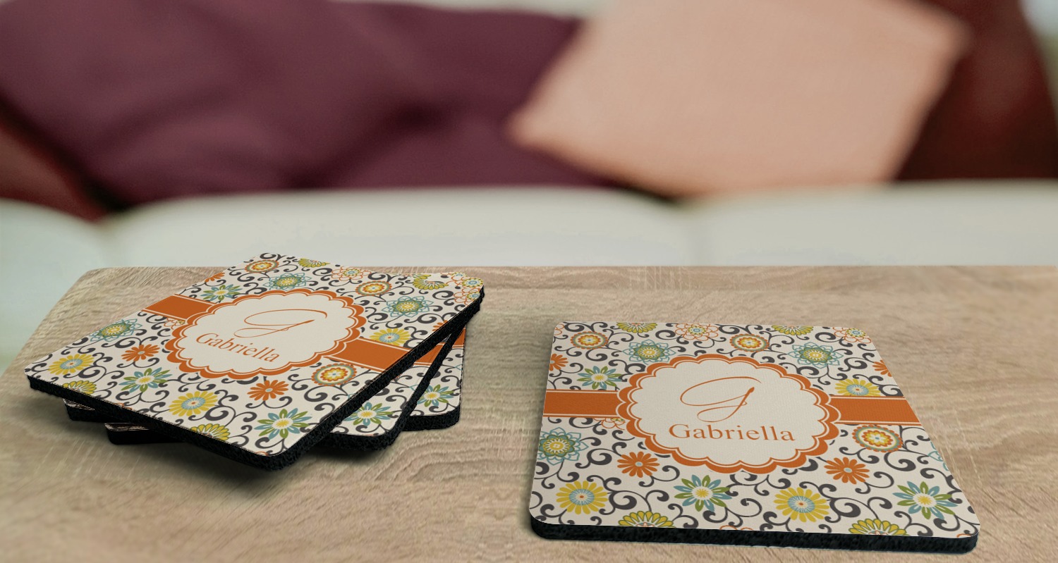 Replace your boring, run-of-the-mill coasters with a set of 4 personalized coasters! When personalized, these coasters will protect your beloved surfaces while adding to your home's decor! Thanks to your coasters bright colors and unique design, your guests will be eager to use them!