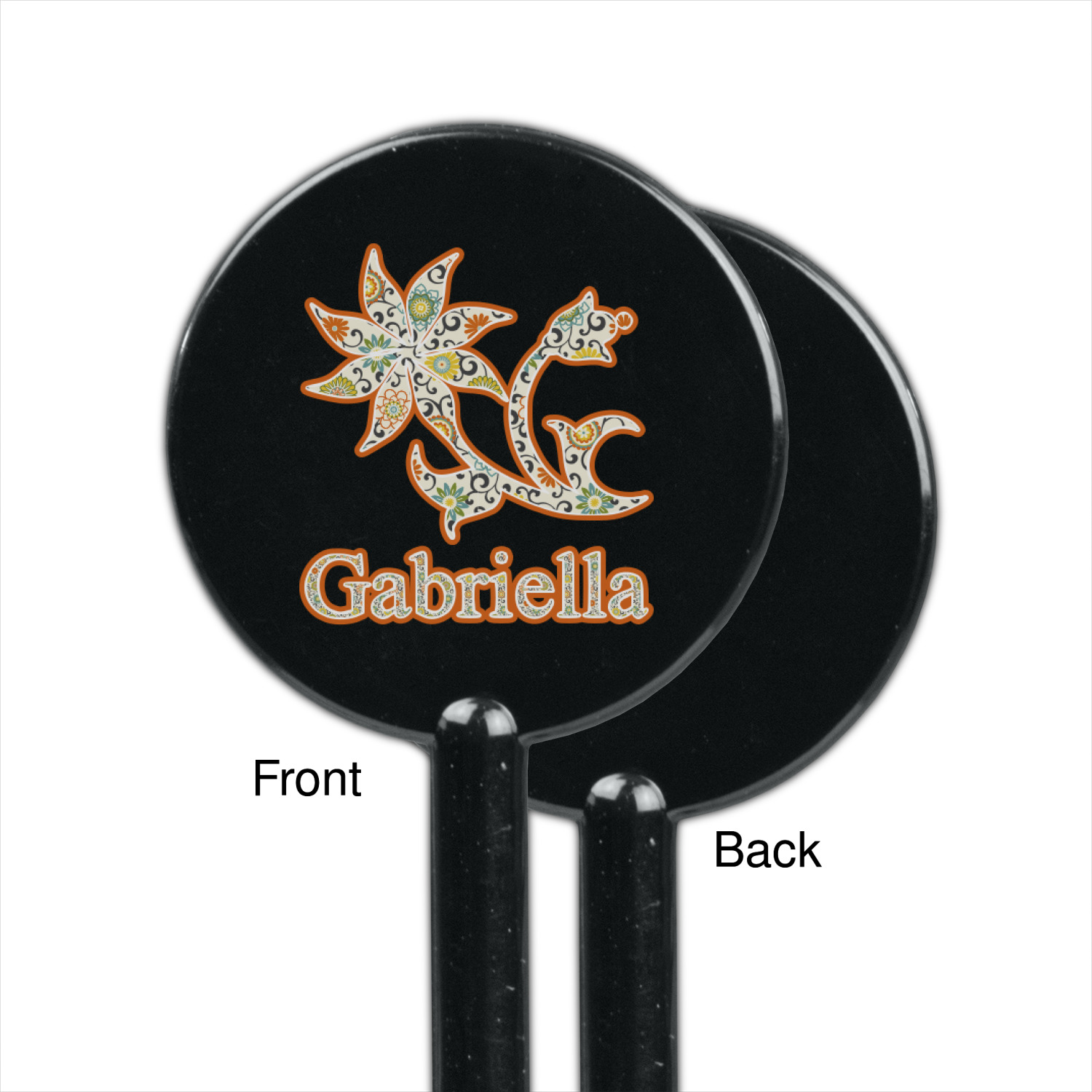 The design has a classic ribbon in orange trimmed in white. The decorative white scalloped label is trimmed in orange. Add an initial and a name for that personal touch to pull the entire design together.