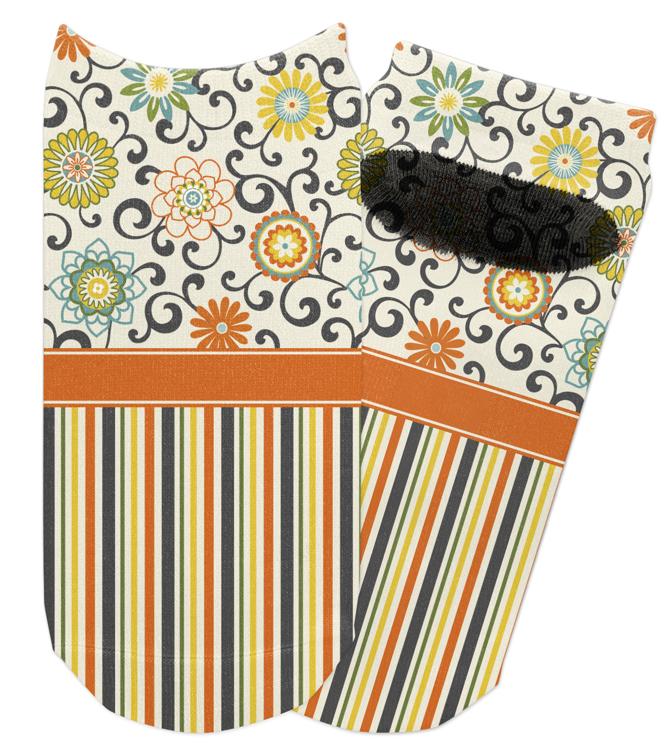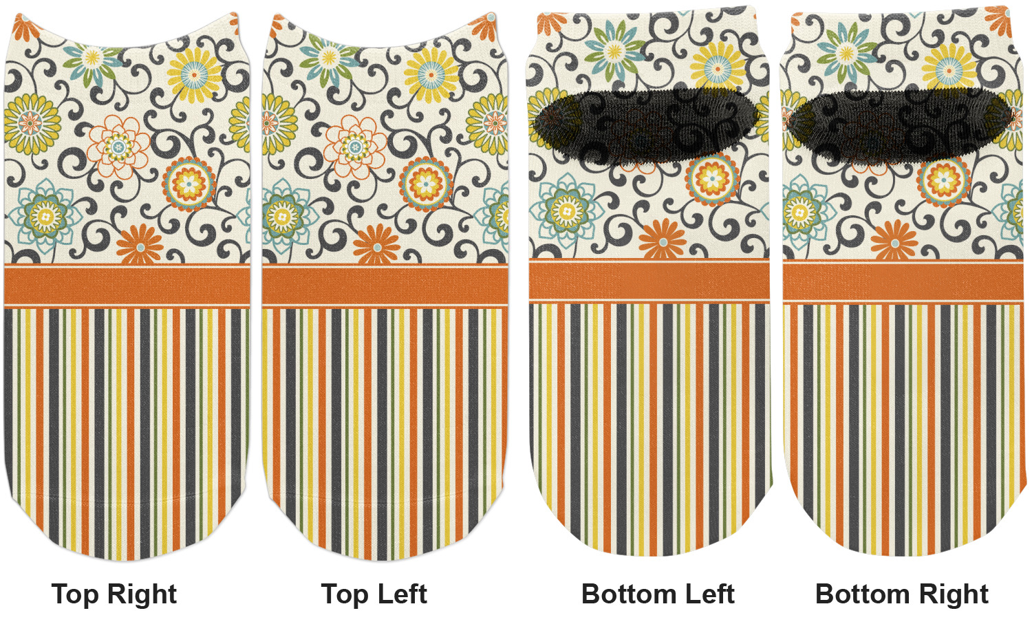 We have brought retro back to being relevant with this gorgeous swirls and floral pattern with a traditional stripe pairing. The top of the design renews the orange, green, blue, and yellow but adds a modern twist by using dark gray. The floral pattern is set on a background of white to make this print come to life. The bottom of the design has the classic stripe print using coordinating colors from the floral pattern