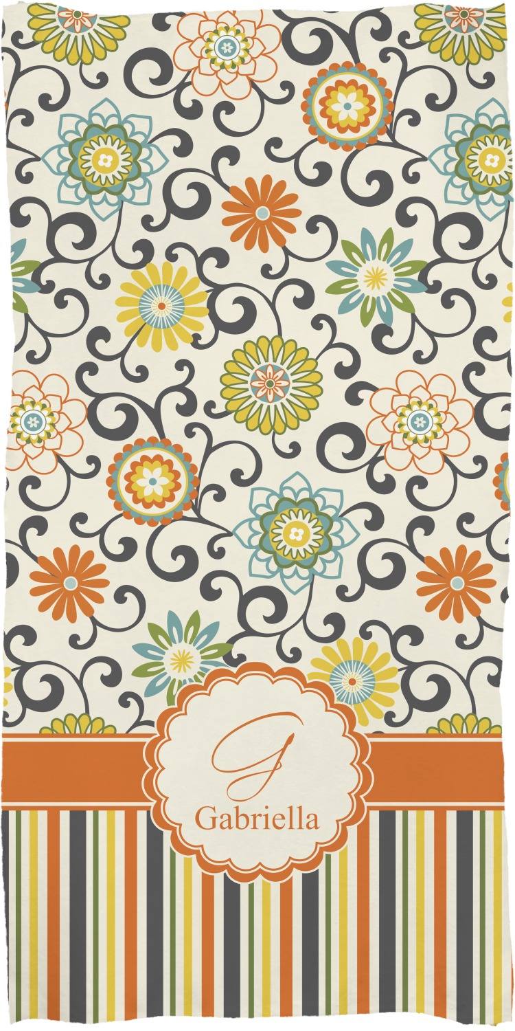 These customized bath towels are slightly larger than your standard towel and are the ideal size for wrapping around your body. They measure approximately 60" x 30". Your customization is displayed across the entire front face of the towel, while the back is white.
