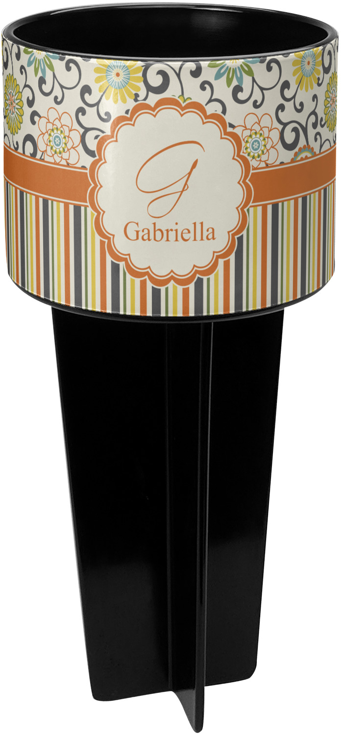 This cup holder has a large stake at its bottom that anchors it to the sand or ground below, while the cup holder rests above the stake. The entire drink holder is made of durable plastic and displays your customization around the cup holder portion. We sell these personalized beach spikers in two different colors: black and white.