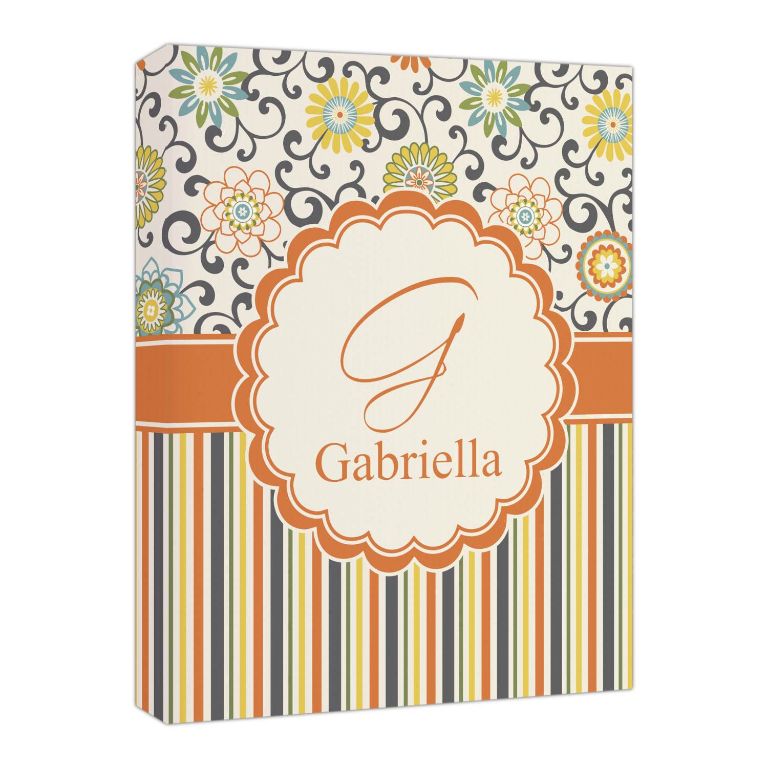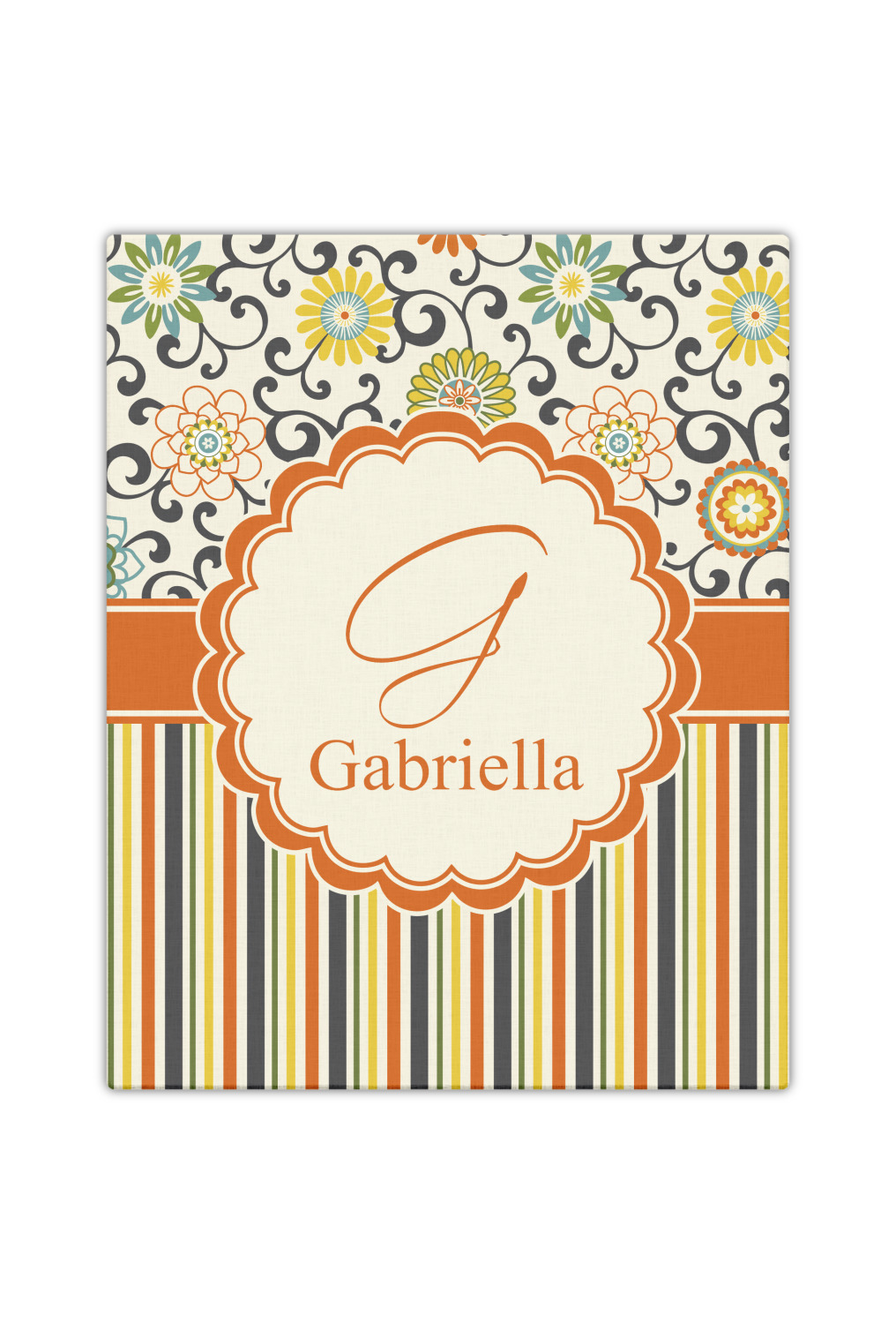 The design has a classic ribbon in orange trimmed in white. The decorative white scalloped label is trimmed in orange. Add an initial and a name for that personal touch to pull the entire design together.