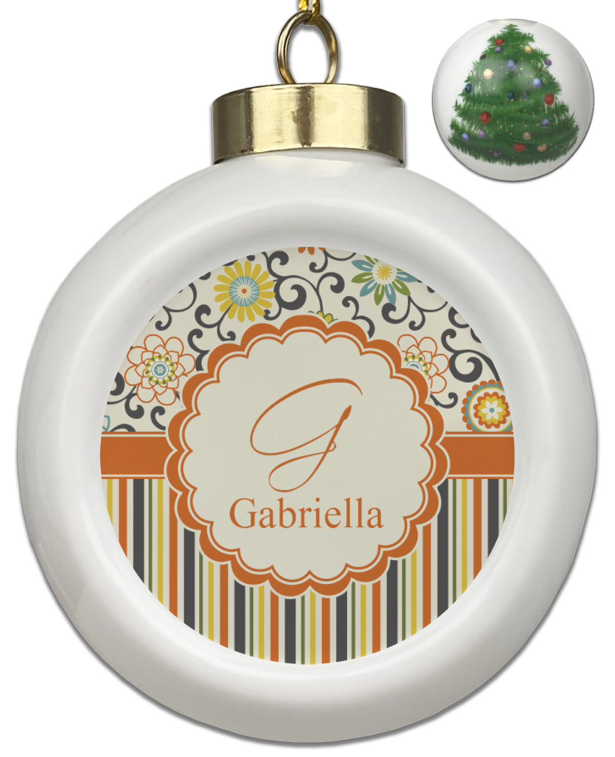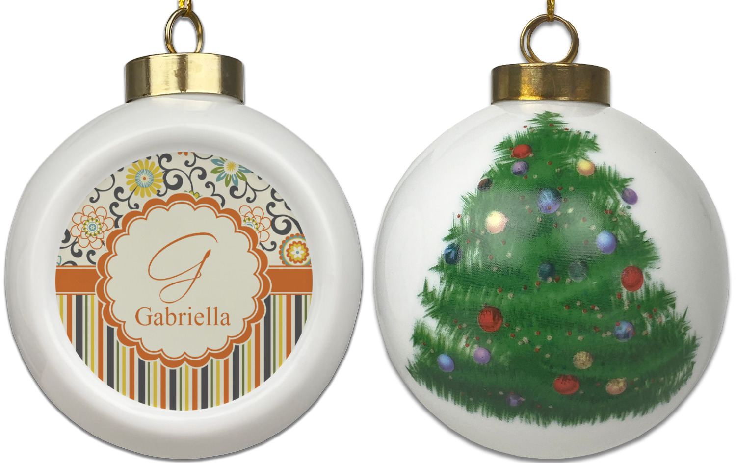 Our Christmas ornaments are a unique ceramic ball shape with a twist as it has a flat face to display your custom design! Select from one of our two design types - Christmas Tree or Poinsettia Garland - to adorn the curved back of your personal design. Each ornament measures 3H x 2.5W x 2D accompanied with a gold string accent for finishing touches to hang on your beautiful Christmas tree!