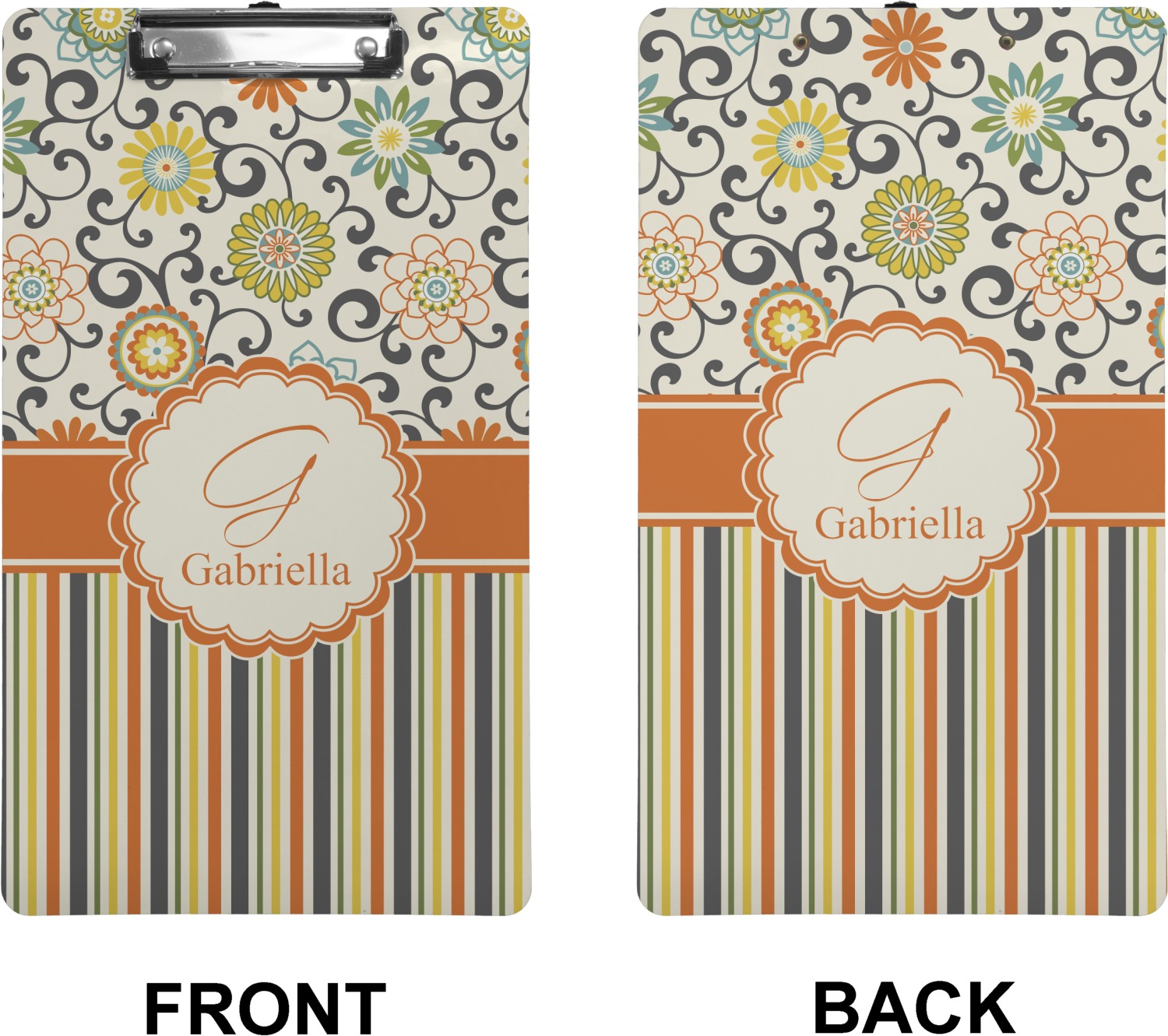 These custom clipboards are made from a strong hardboard and are coated with a glossy finish that accentuates the colors of your design. Alongside a retractable hook at its top, these decorative clipboards also feature sturdy clips to secure several sheets of paper. We sell these clipboards in two separate sizes. Our letter size measures at 12.5" L x 9" W, while our legal clipboard is approximately 15.5" L x 9" W. On both models, your personalization is printed on both sides of this clipboard and can be customized individually.