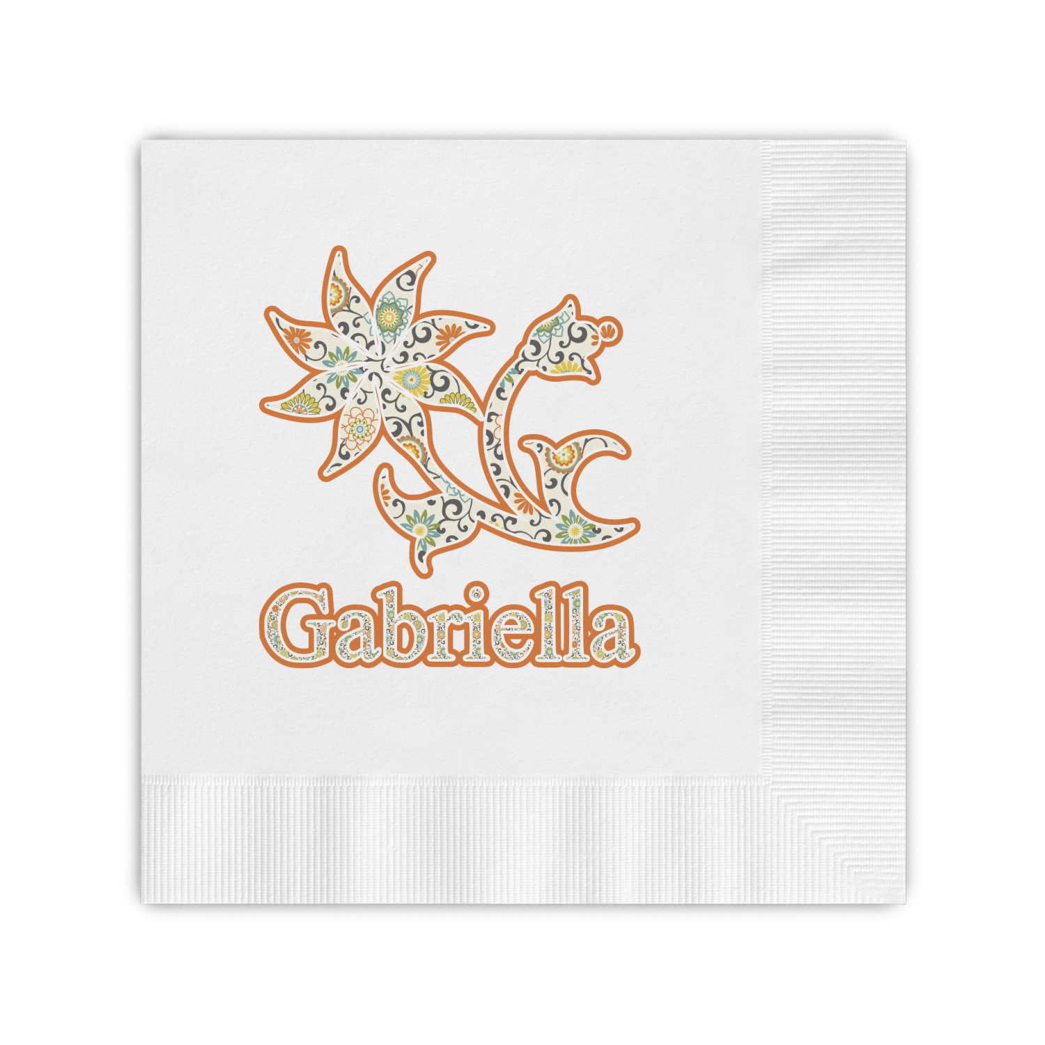 You may also be interested in our party dessert plates & cups. We also carry personalized luncheon paper napkins, dinner napkins, as well as our cloth napkins.