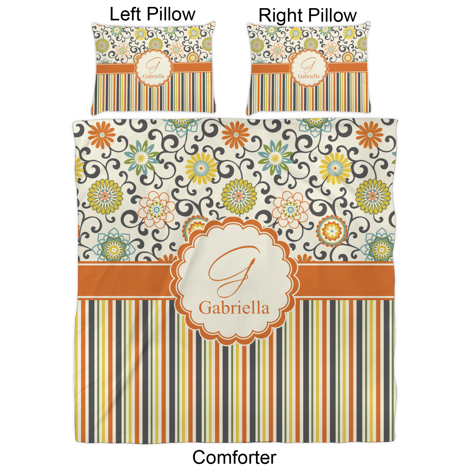 We have hundreds of different design templates for you to choose from Each design can be customized to your exact specifications. Not only can you customize the comforter, but you can also customize each pillow sham e.g. for a queen comforter set you have have Mr & Mrs pillow shams with the last name on comforter.