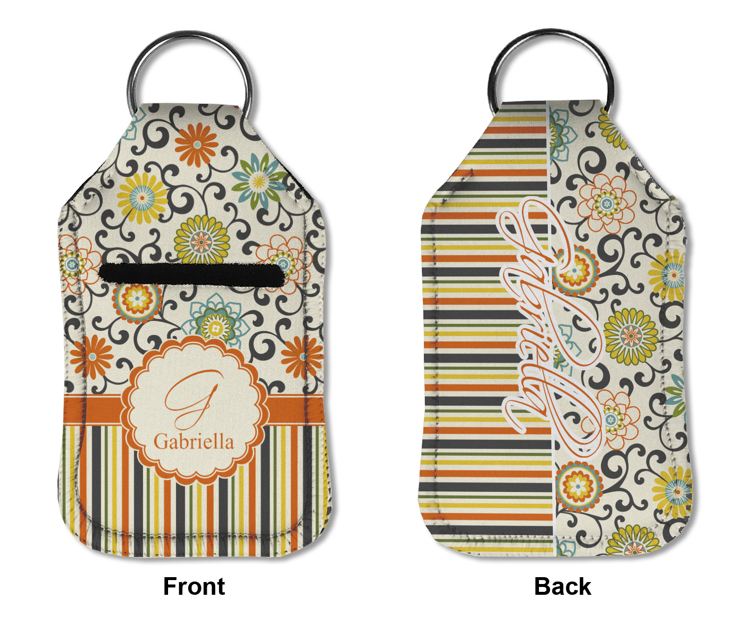Each hand sanitizer holder comes with its own empty travel-sized, refillable hand sanitizer sure to fit snug in your customized sanitizer case! Our hand sanitizer cases are a durable, yet soft neoprene material sure to last any daily activities or travel agenda. Customize and personalize a hand sanitizer bottle holder with one of our two sizes - small (4.25" x 2.25") or large (5.5" x 2.5"). Each travel sanitizer holder comes with a keyring for attachment on bags, keys, or more!