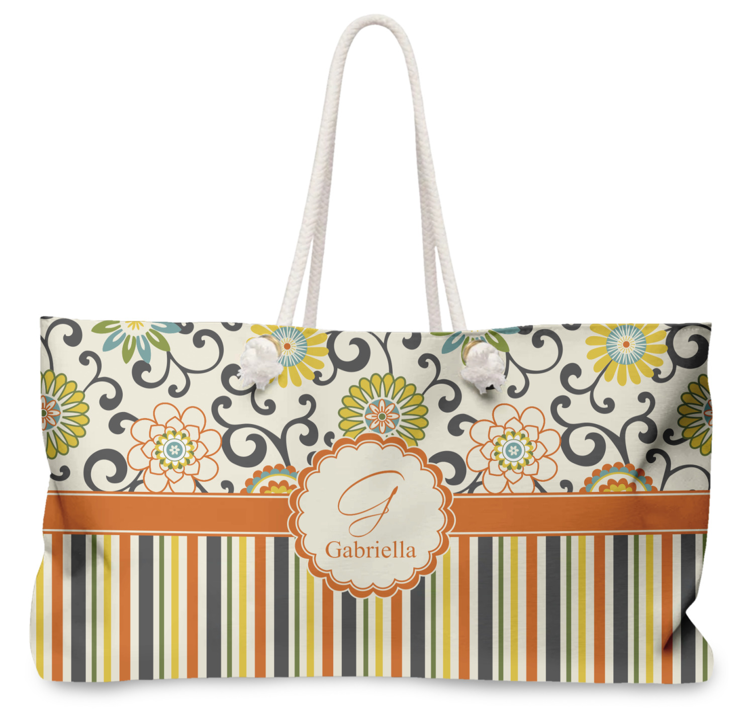 These weekender totes can be customized front and back. The totes are full all over print - so the choice of how background are endless - from beautiful floral or leaf patterns to geometrics or some classic Van Gogh artwork - the possibilities are endless. The totes can also be decorated with photos and logos.