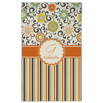 We have brought retro back to being relevant with this gorgeous swirls and floral pattern with a traditional stripe pairing. The top of the design renews the orange, green, blue, and yellow but adds a modern twist by using dark gray. The floral pattern is set on a background of white to make this print come to life. The bottom of the design has the classic stripe print using coordinating colors from the floral pattern