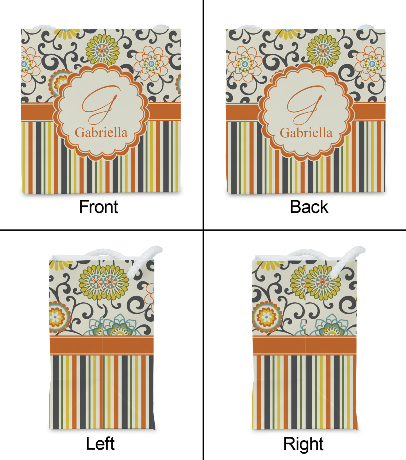 The design has a classic ribbon in orange trimmed in white. The decorative white scalloped label is trimmed in orange. Add an initial and a name for that personal touch to pull the entire design together.