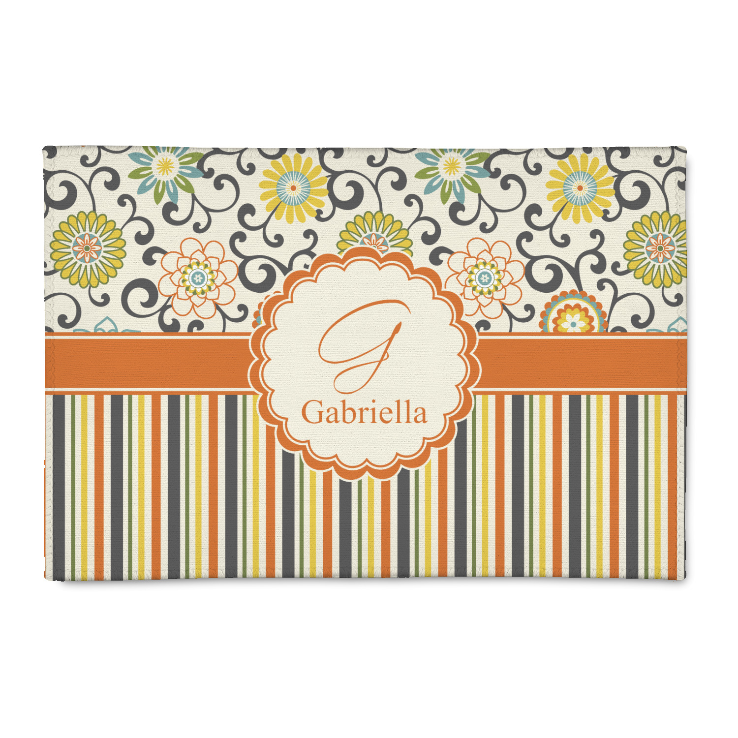 We have brought retro back to being relevant with this gorgeous swirls and floral pattern with a traditional stripe pairing. The top of the design renews the orange, green, blue, and yellow but adds a modern twist by using dark gray. The floral pattern is set on a background of white to make this print come to life. The bottom of the design has the classic stripe print using coordinating colors from the floral pattern