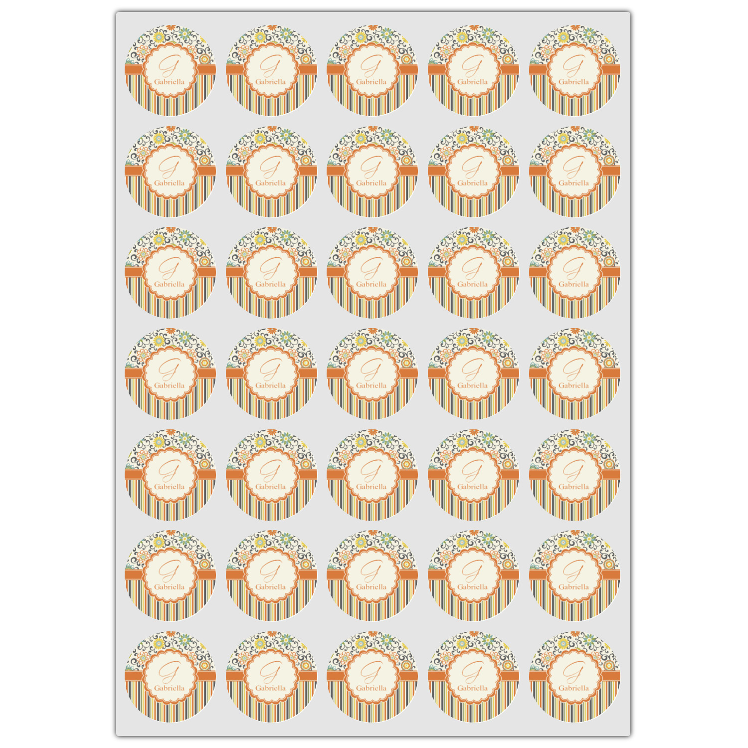 The design has a classic ribbon in orange trimmed in white. The decorative white scalloped label is trimmed in orange. Add an initial and a name for that personal touch to pull the entire design together.